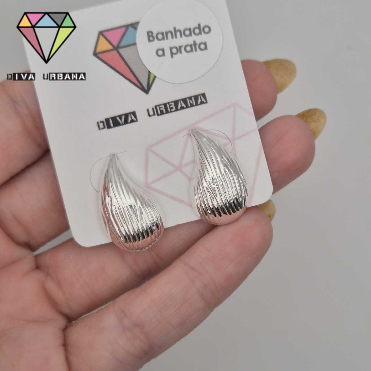 B8627 BRINCO PINO BANHADO A PRATA GOTA FRISADA M