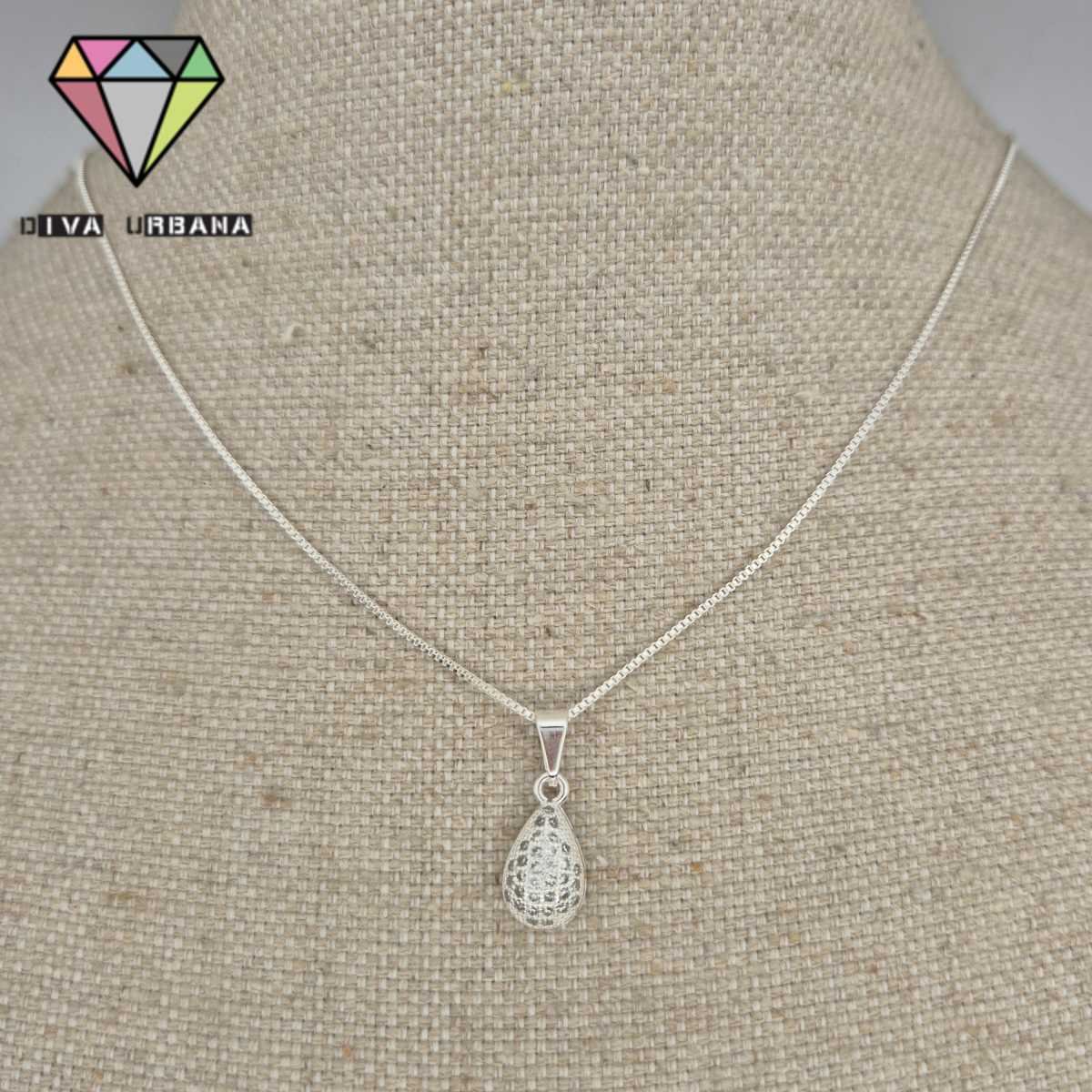 C4433 COLAR ELO VENEZIANO BANHADO A PRATA GOTA CRAV ZIRC CRISTAL
