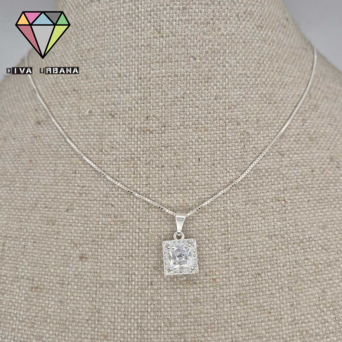 C4441 COLAR ELO VENEZIANO BANHADO A PRATA ZIRC QUADRADA CRAV ZIRC