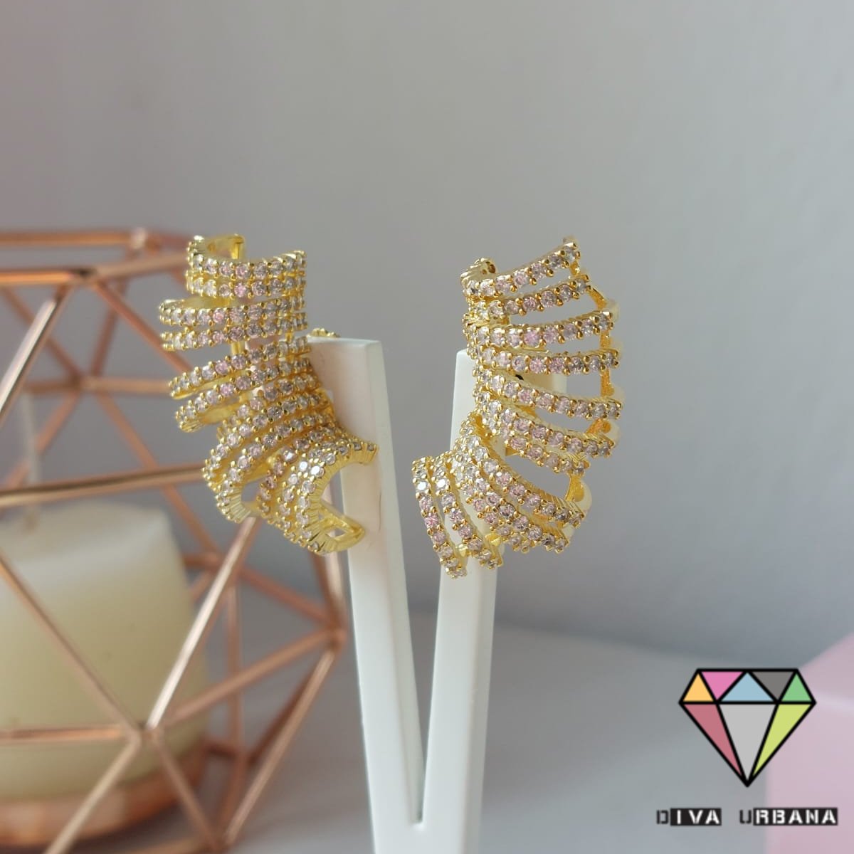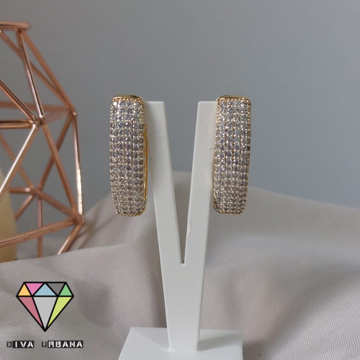 B1512 BRINCO ARGOLA CINCO FILEIRAS CRAV ZIRC CRISTAL G