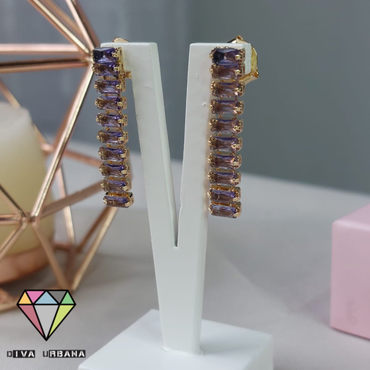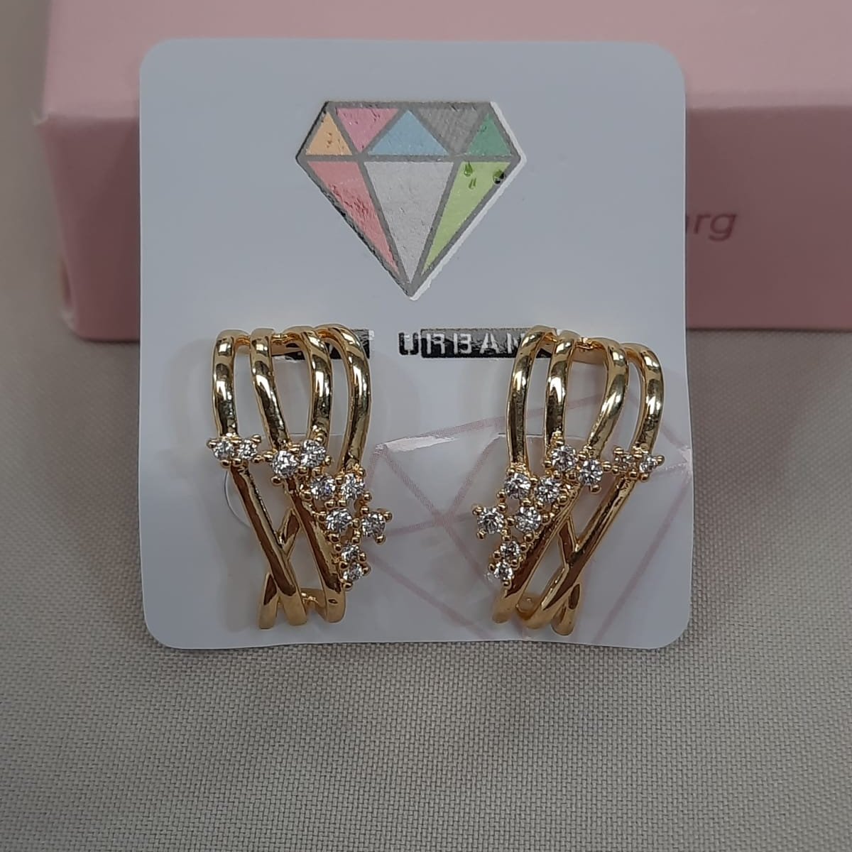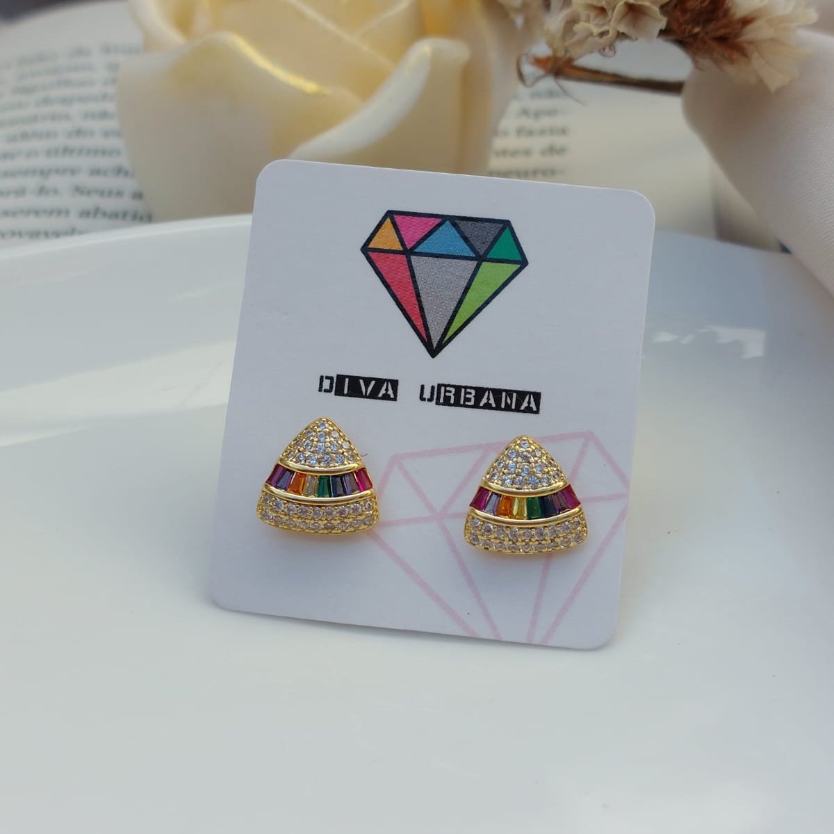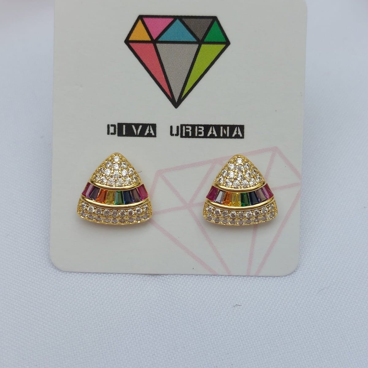 B3347 BRINCO TRIANGULO ARREDONDADO ZIRC CRISTAL FAIXA NAVETE COLOR