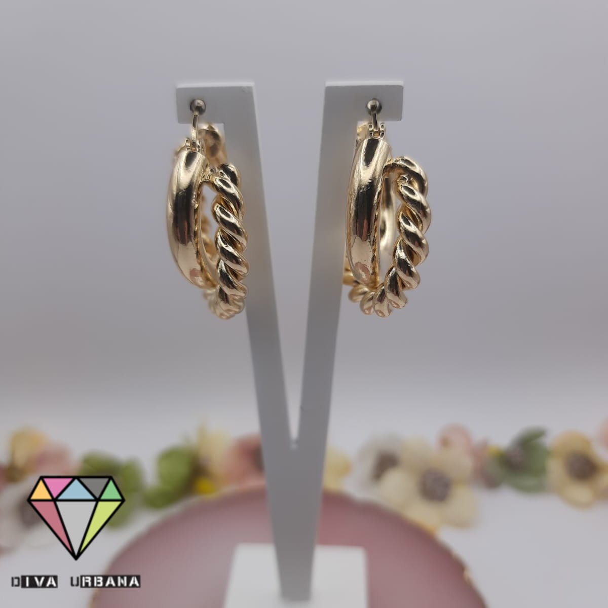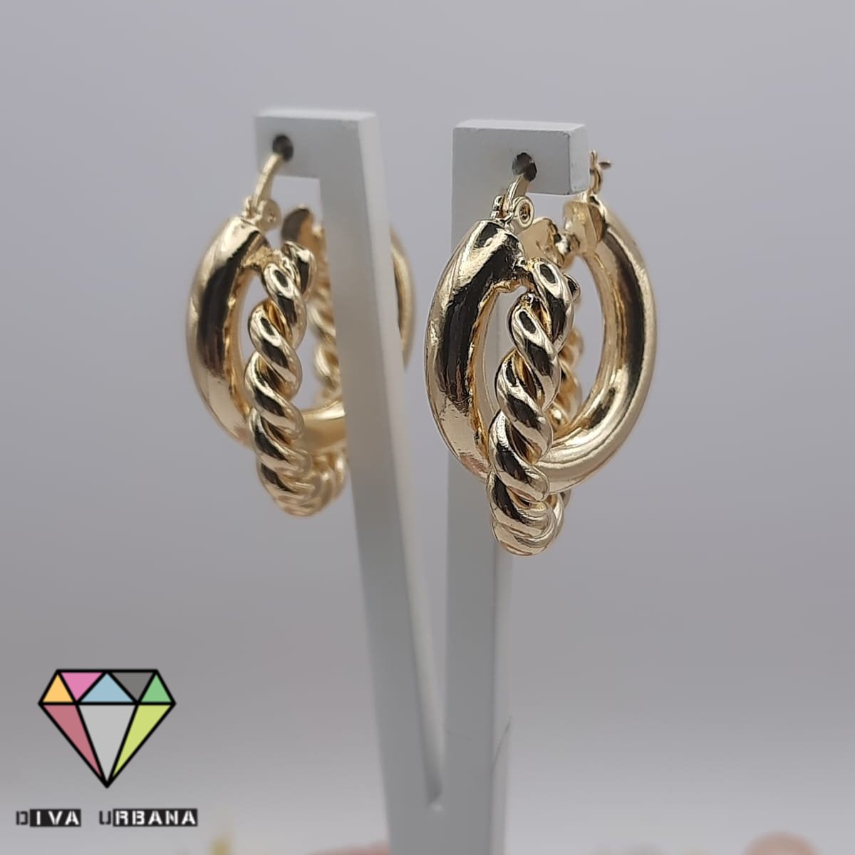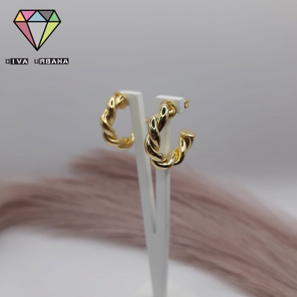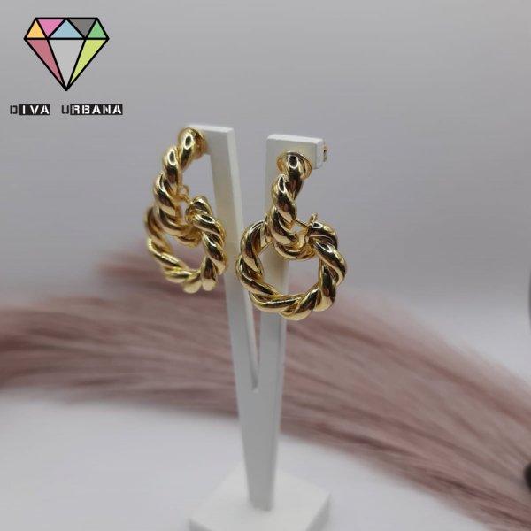 B2790 BRINCO ARGOLA DOURADA ELO LISO ELO TORCIDO