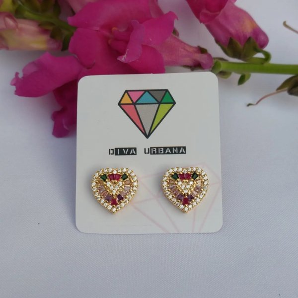 B2716 BRINCO CORAÇÃO G NAVETES COLORIDOS E ZIRC CRISTAIS