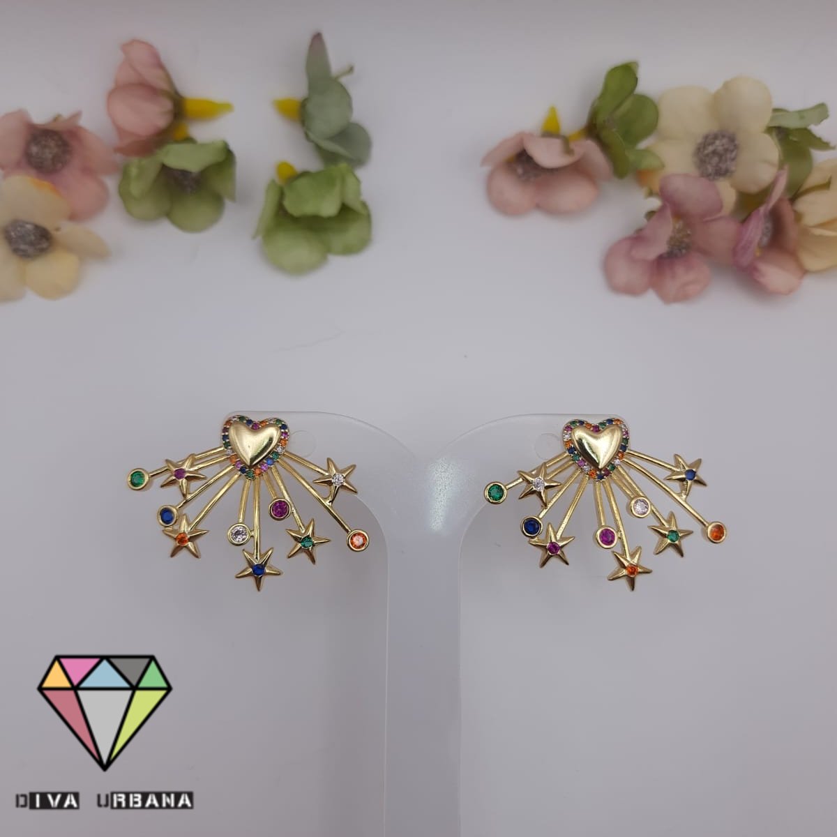 B2624 BRINCO CORAÇÃO E ESTRELAS CRAV ZIRC COLORIDA