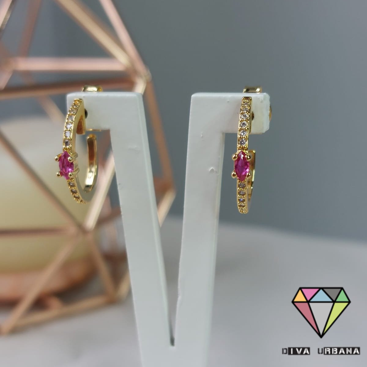B2994 BRINCO ARGOLA CRAV ZIRC CRISTAL PONTO LUZ PINK