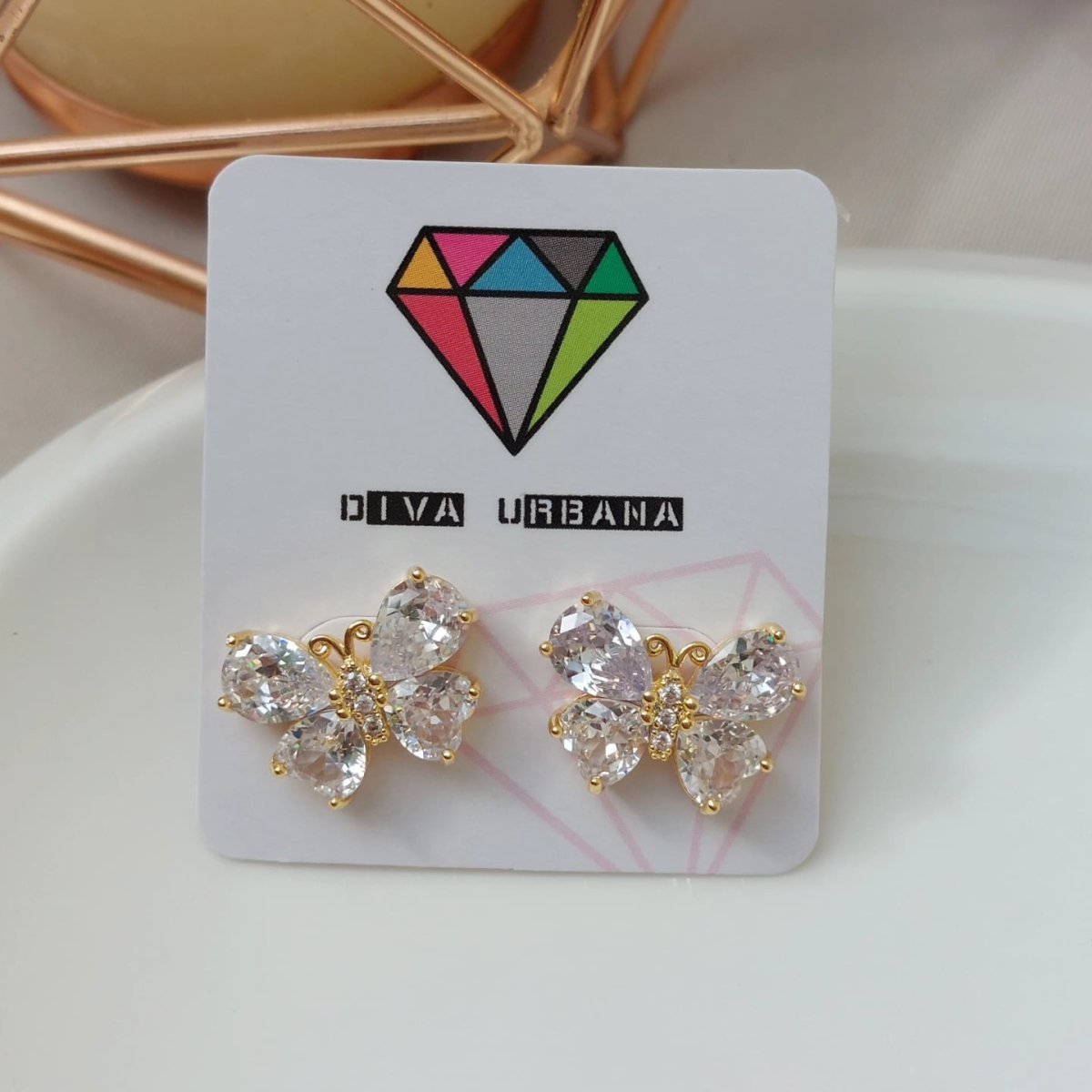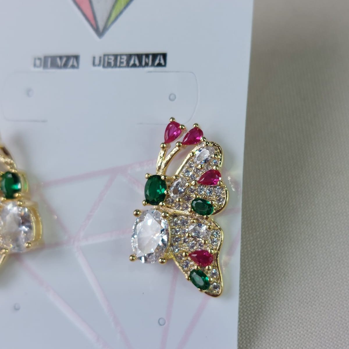 B3327 BRINCO BORBOLETA PEDRAS COLORIDAS CRAVEJAMENTO CRISTAL