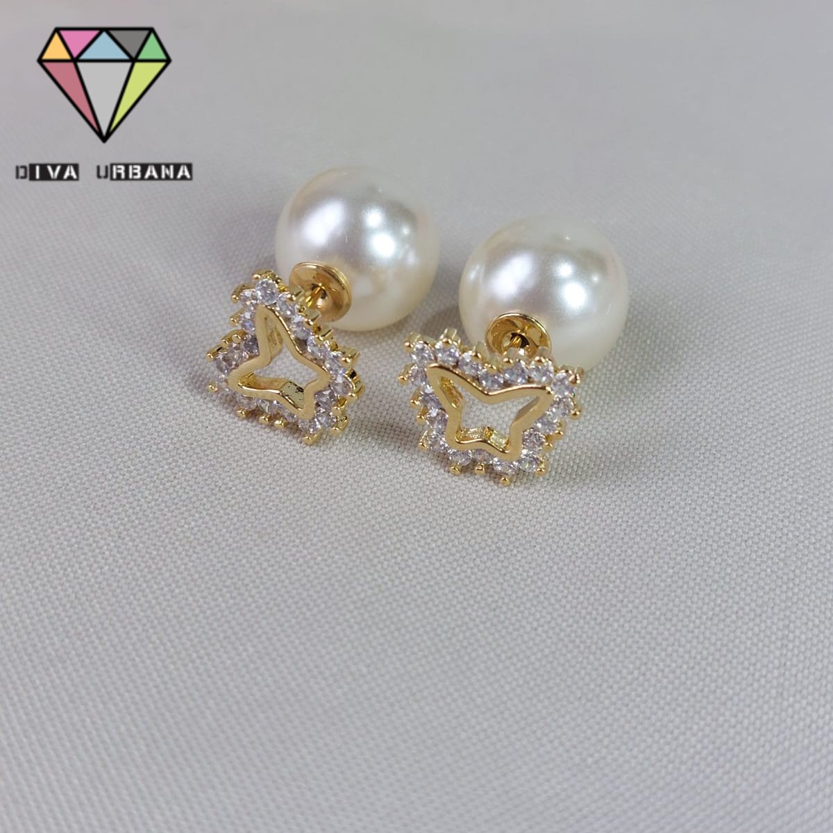 B3369 BRINCO INSPIRAÇÃO DIOR PEROLA/BORBOLETA VAZADA CRAV ZIRC C