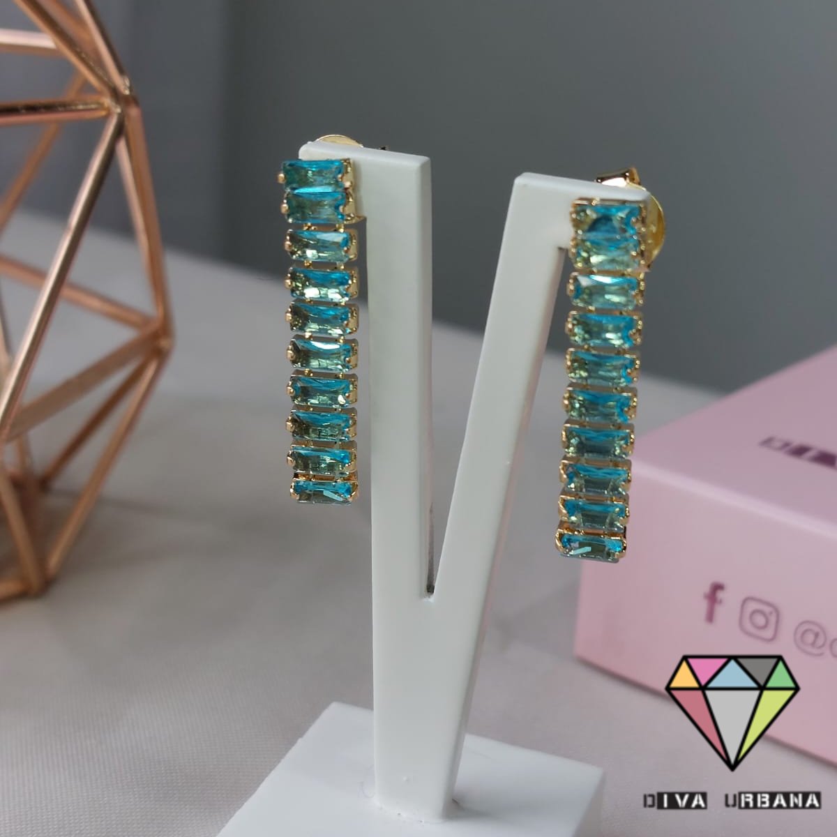 B2732 BRINCO PONTO DE LUZ AZUL CRAV ZIRC COLORIDA