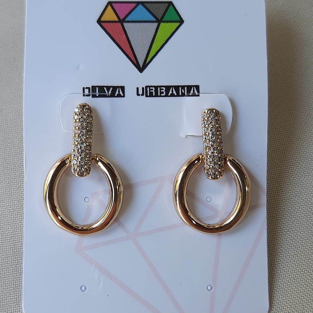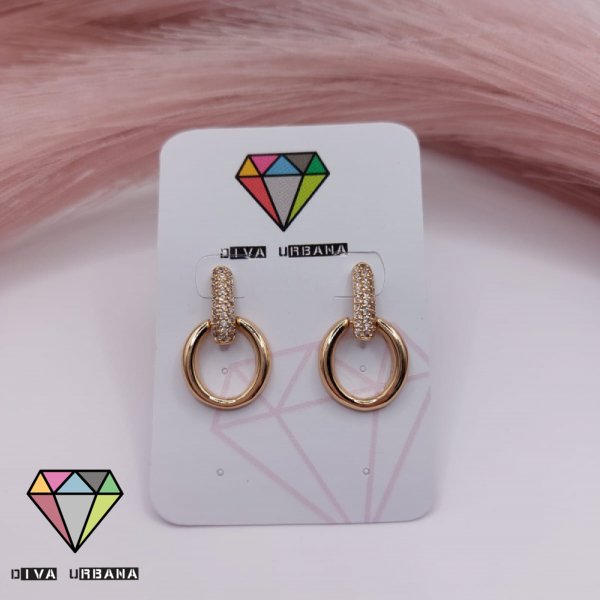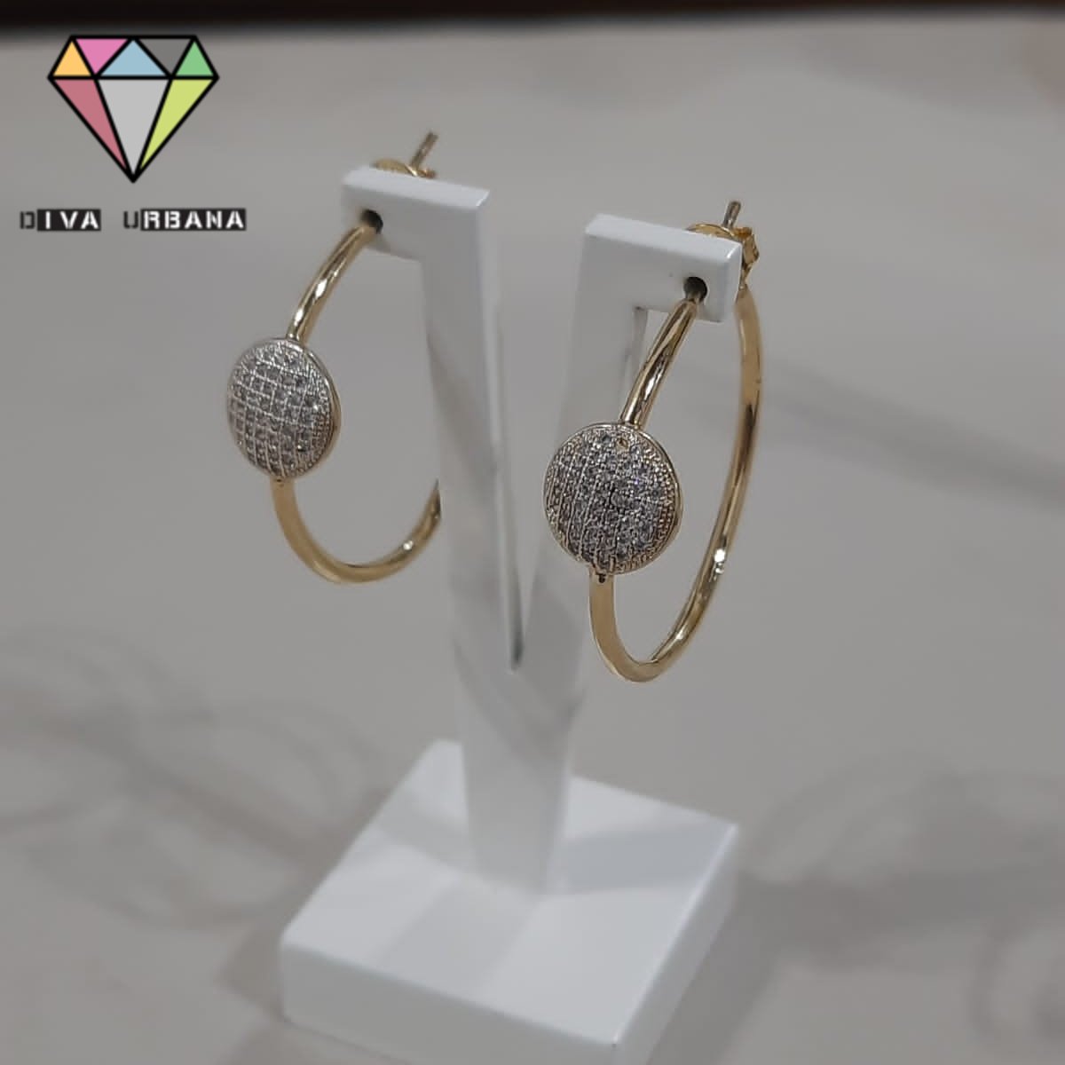 B3934 BRINCO ARGOLA PINO DOURADA GROSSA TREVOS ZIRC CRISTAL