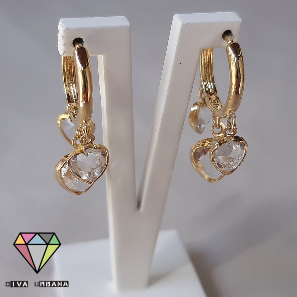 B4084 BRINCO ARGOLA ZIRC CRISTAL PINGENTE CORACAO LISO DOURADO M