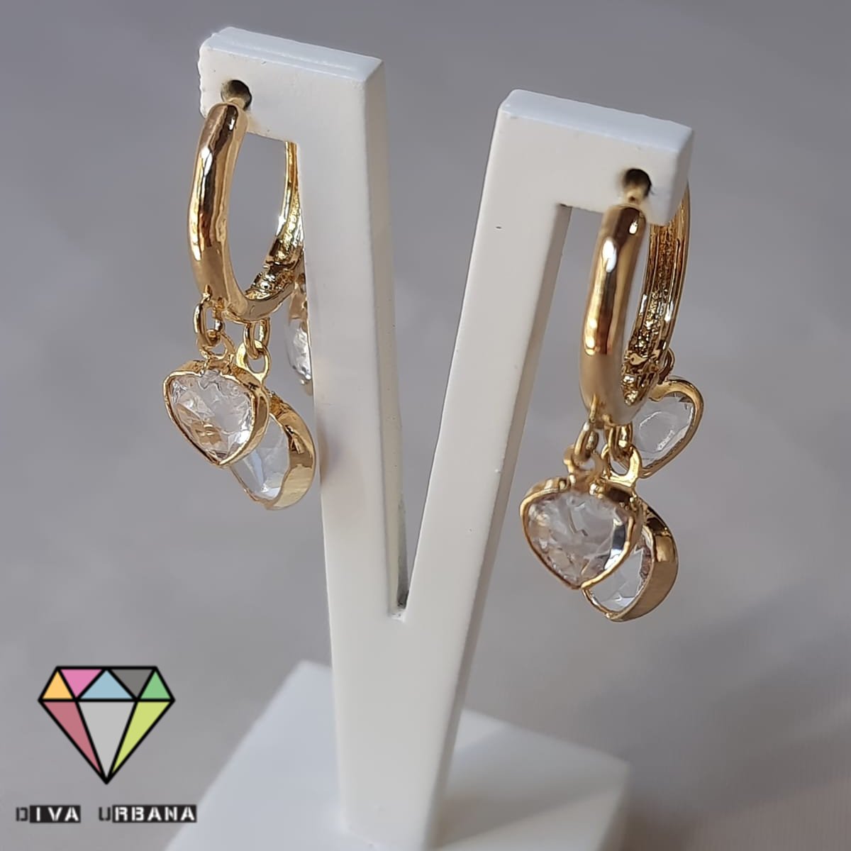 B1674 BRINCO ARGOLA TRÊS CORAÇÕES CRISTAIS