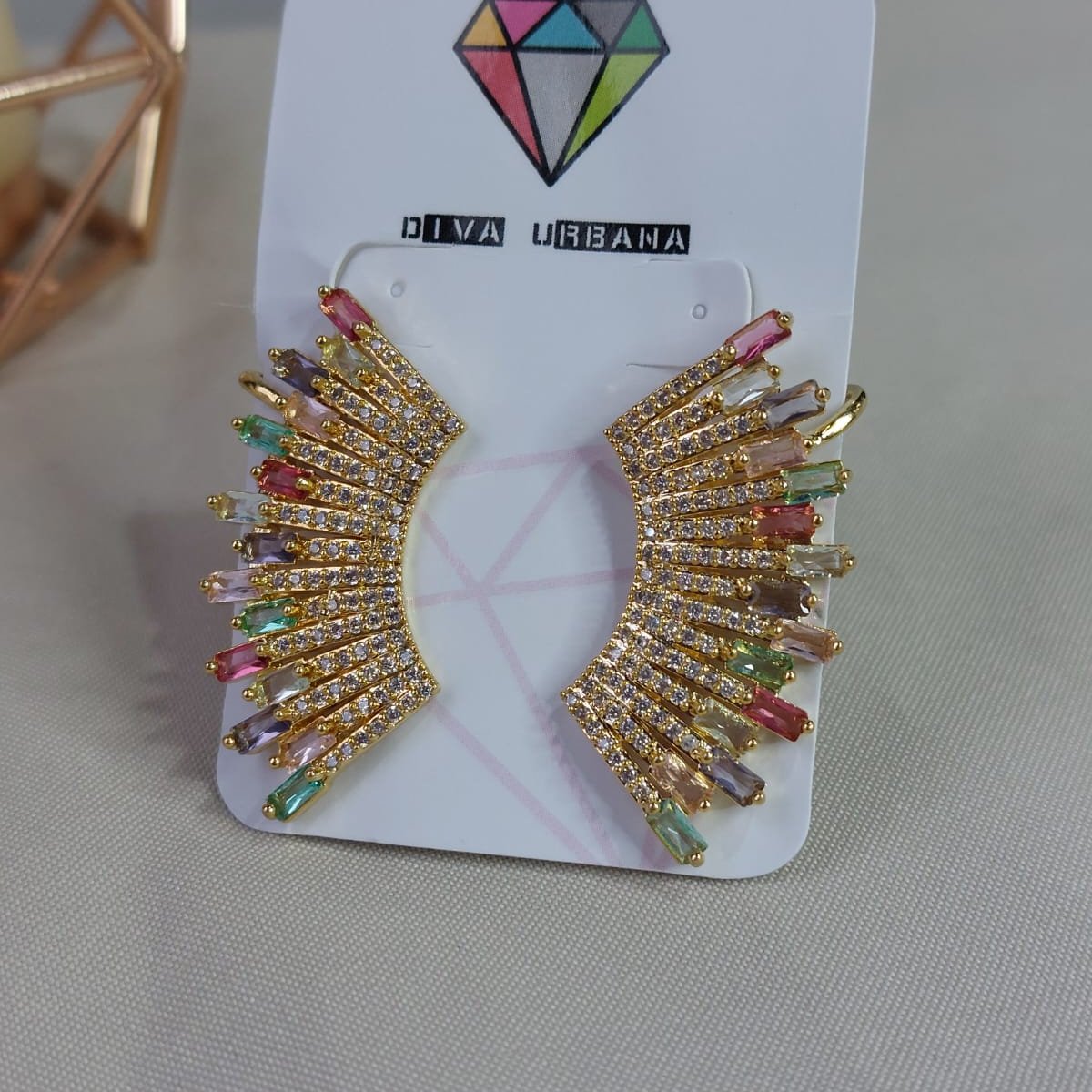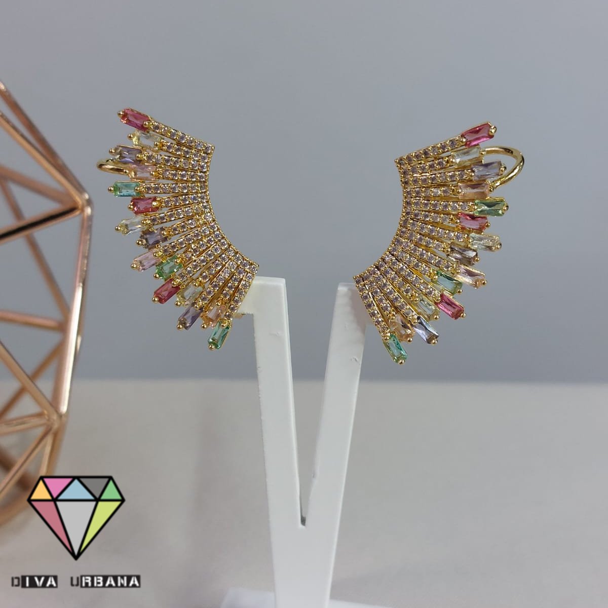B3013 BRINCO EAR CUFF ASA CRAV ZIRC CRISTAL E BAGUETES COLORIDOS