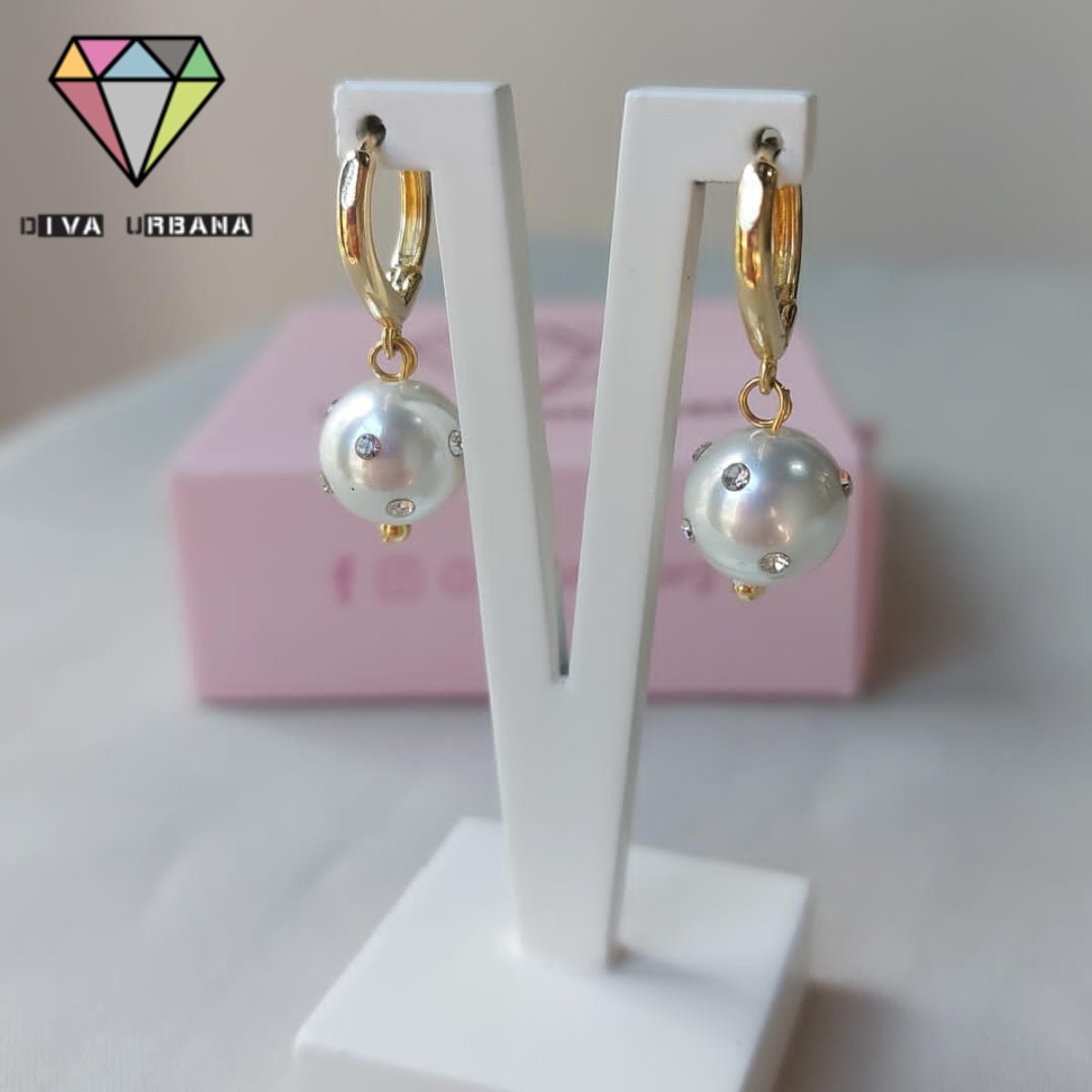 B3288 BRINCO ARGOLA PEROLA ZIRC PONTOS DE LUZ G