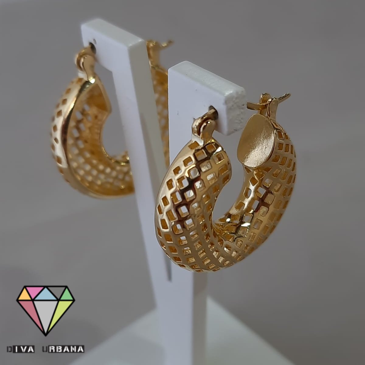 B3427 BRINCO ARGOLA DOURADA MEIO ARO EM GRADE TRANQUETA