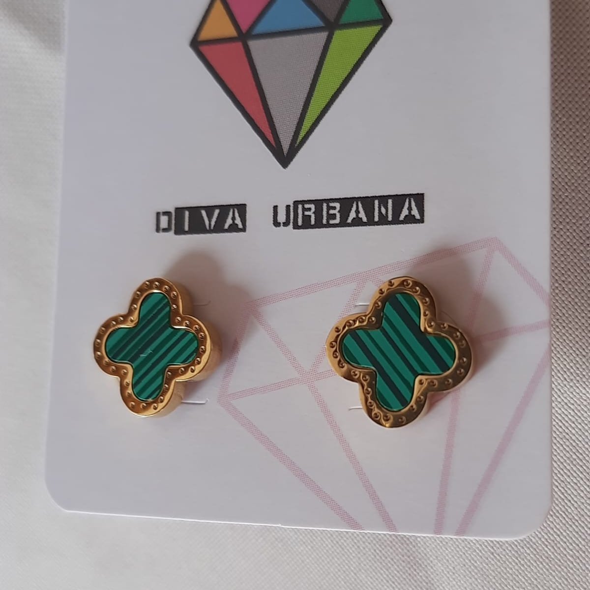 B3929 BRINCO ARGOLA DOURADA PINGENTE QUADRADO ESTRELA VERDE