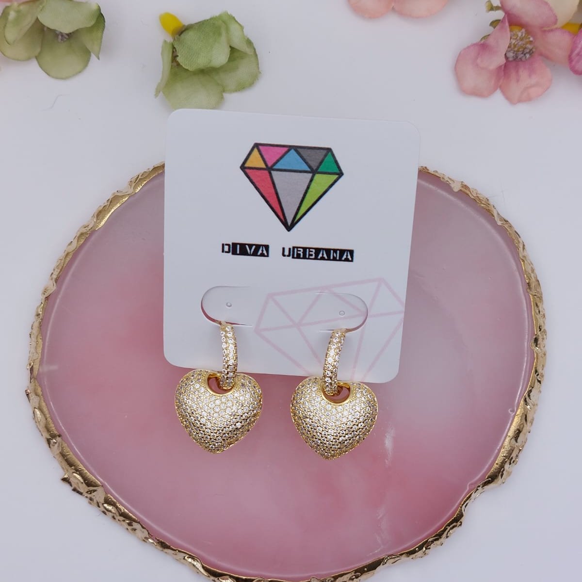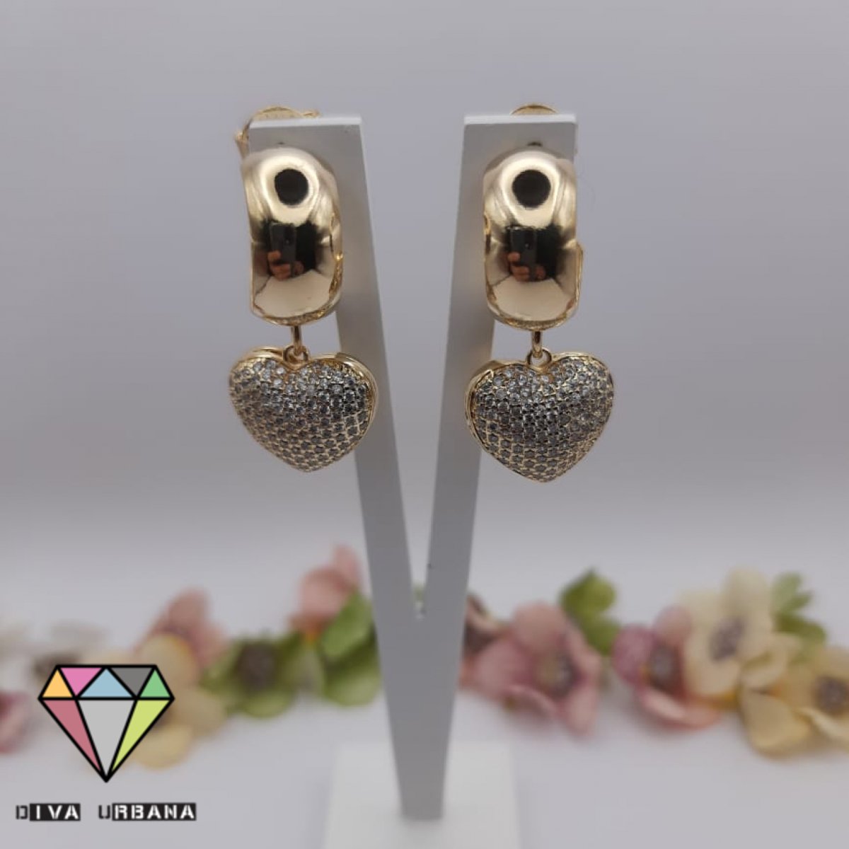 B2635 BRINCO ARGOLA 2 EM 1 CORAÇÃO CRAV ZIRC CRISTAL G