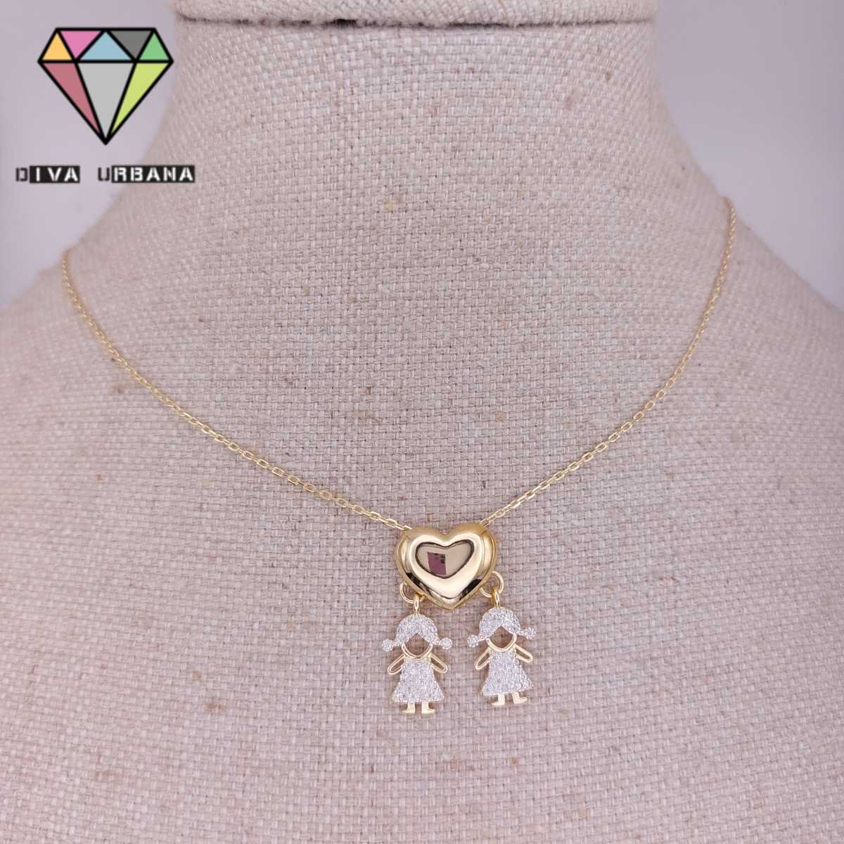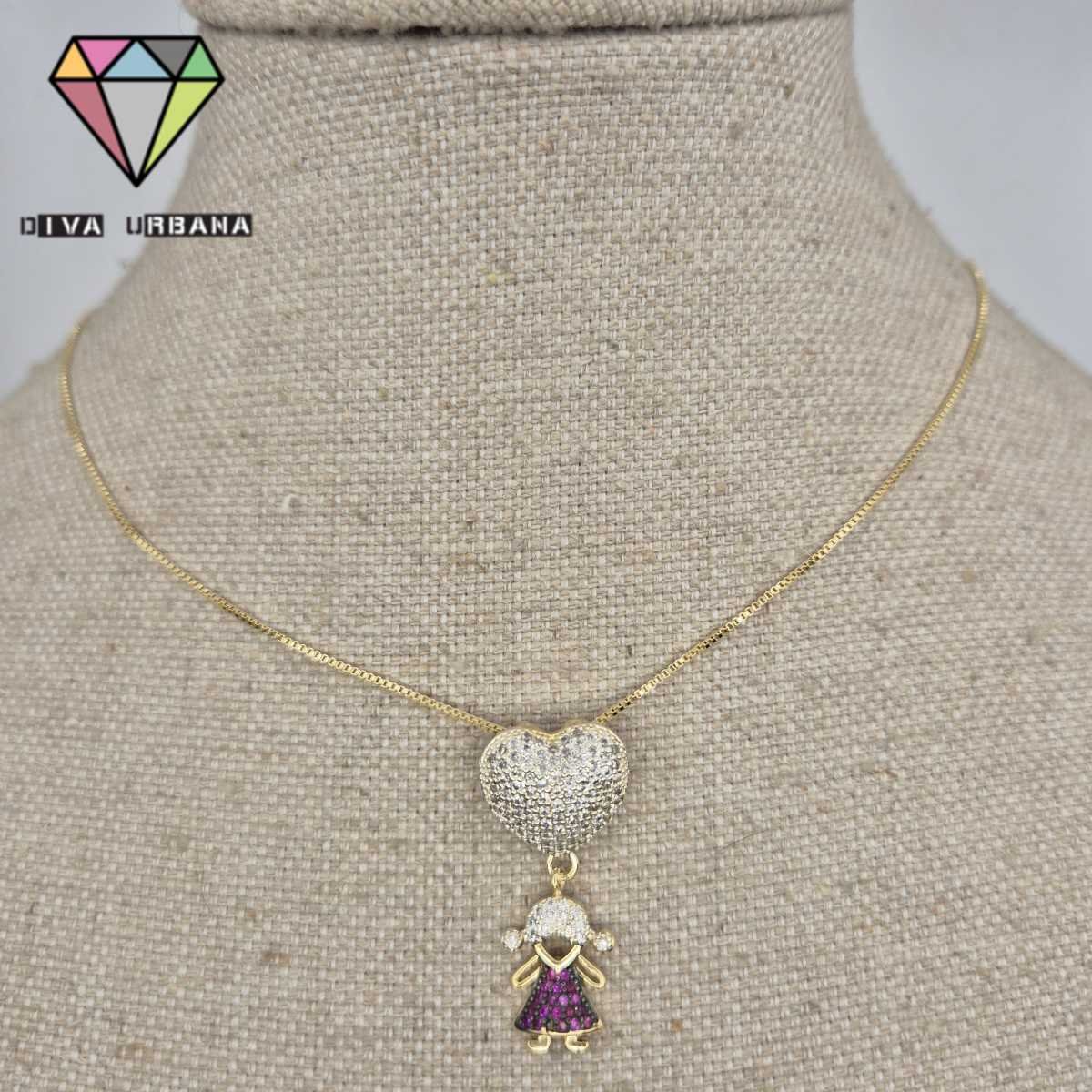 C3953 COLAR ELO VENEZIANO CORACAO DOURADO DUAS MENINAS CRAV ZIRC C