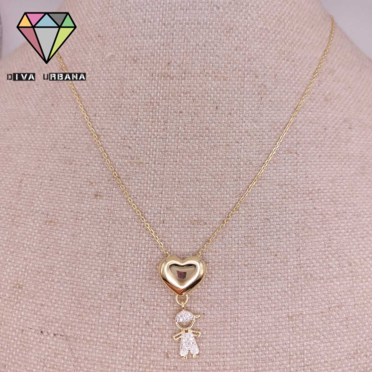 C3941 COLAR ELO VENEZIANO CORACAO DOURADO UM MENINO CRAV ZIRC C