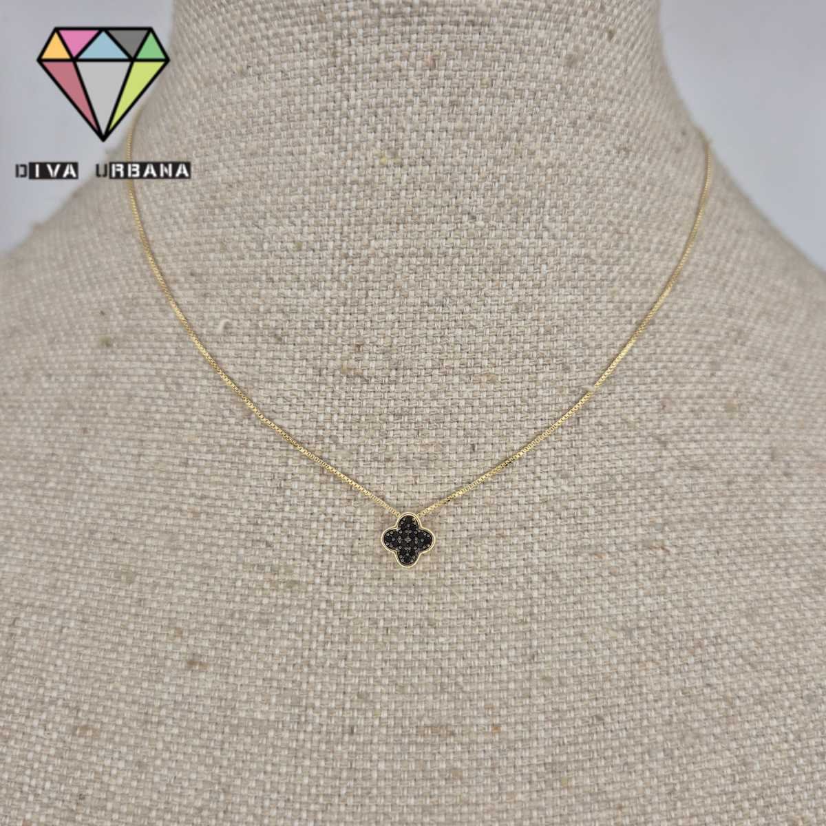 C4208 COLAR ELO VENEZIANO TREVO P CRAV ZIRC NEGRA