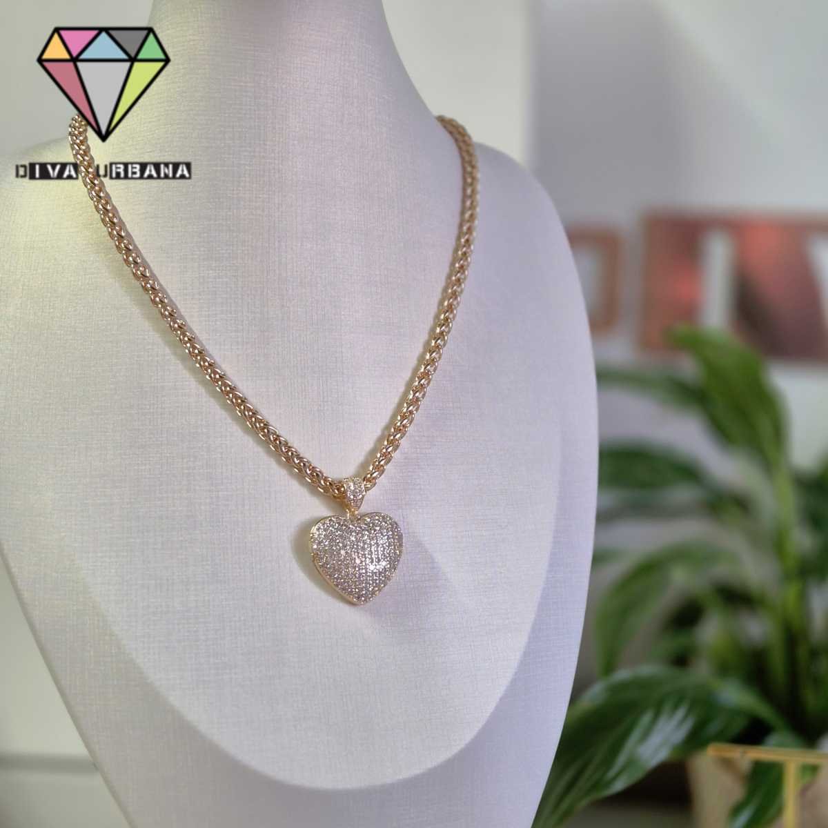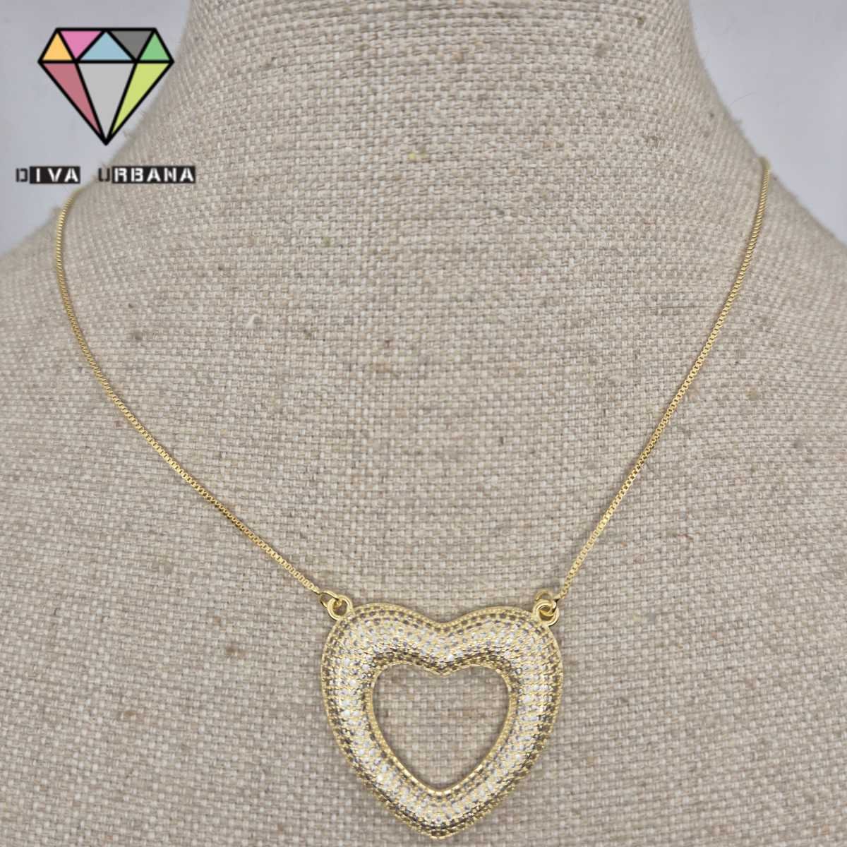 C4117 COLAR ELO VENEZIANO CORACAO GG VAZADO CRAV ZIRC CRISTAL