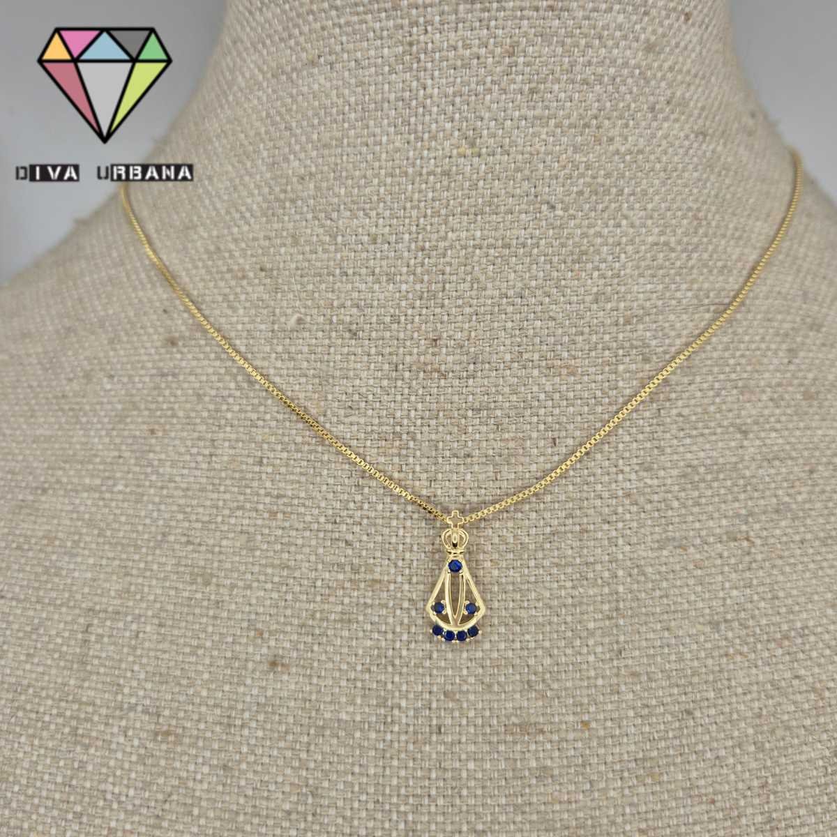 C4139 COLAR ELO VENEZIANO NOSSA SRA APARECIDA VAZADA ZIRC AZUL