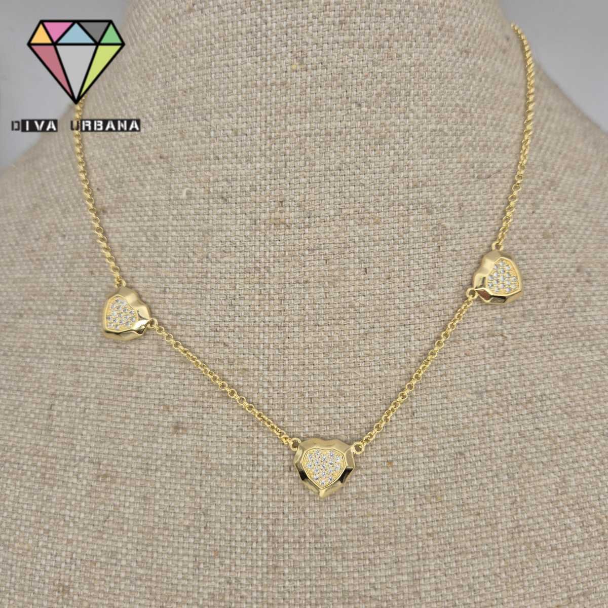 C4152 COLAR ELO PORTUGUES DELICADO TRES CORACOES CRAV ZIRC CRISTAL