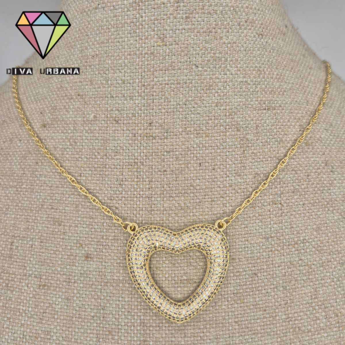 C4187 COLAR ELO DUPLO CORACAO VAZADO GG CRAV ZIRC CRISTAL