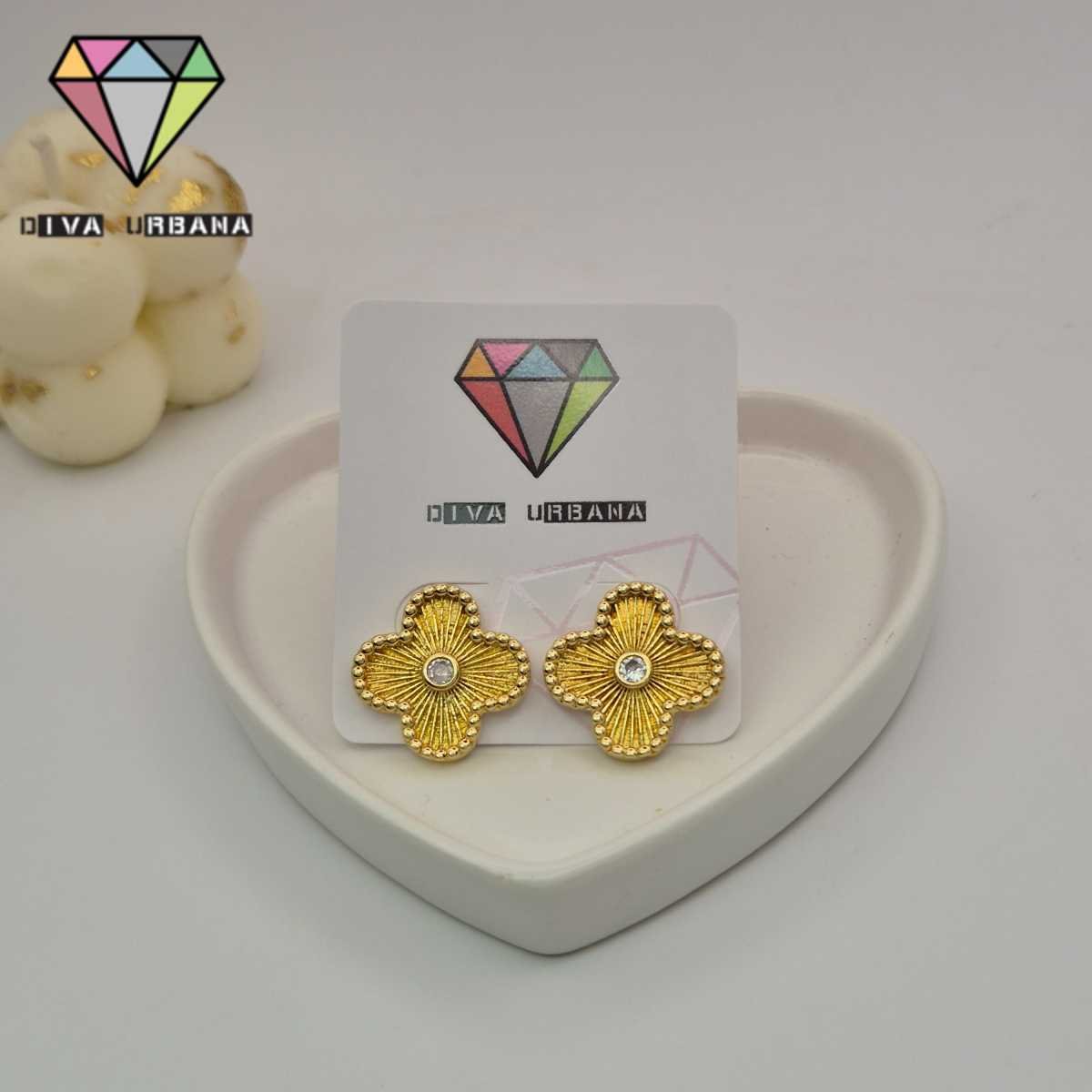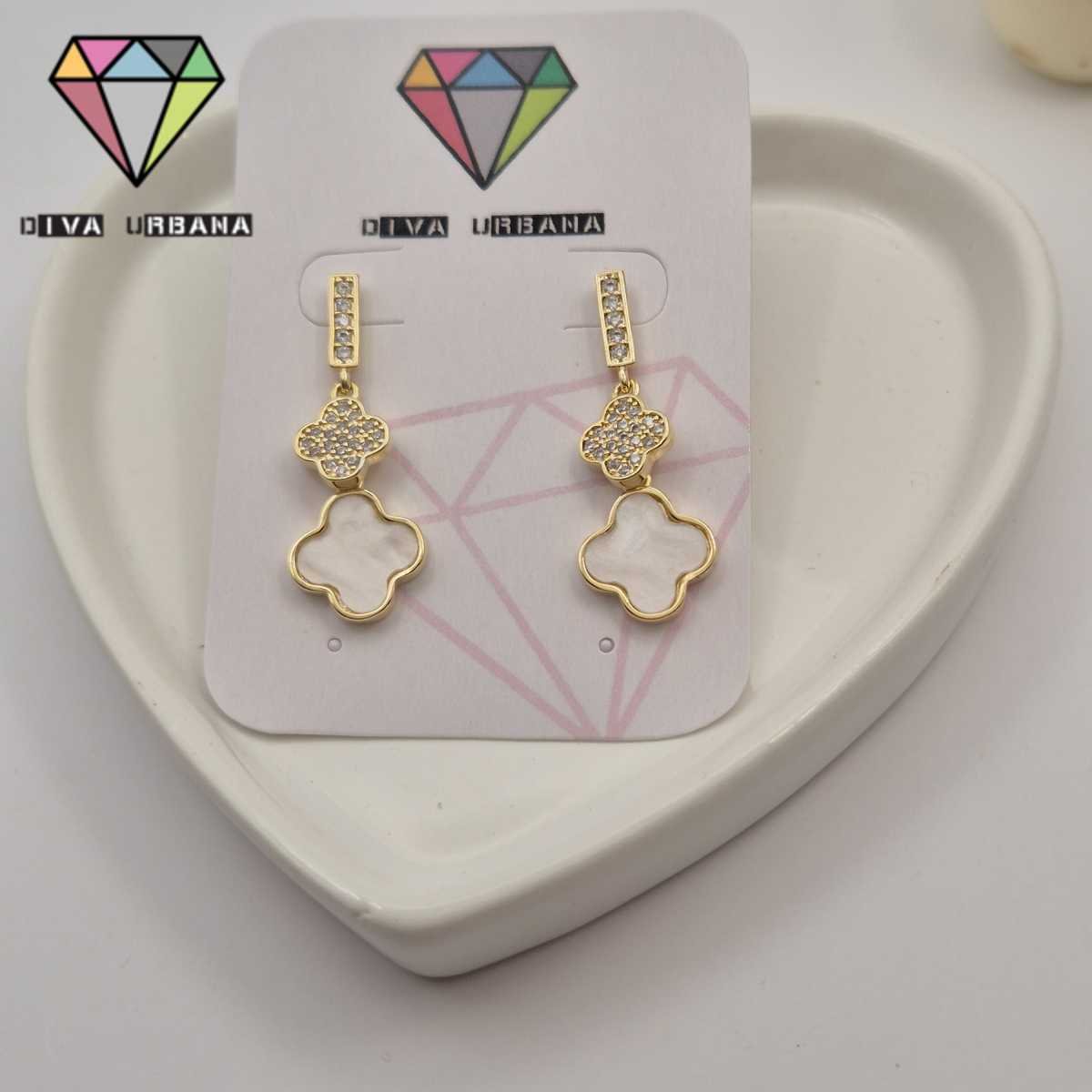 B7639 BRINCO PINO TREVO CRAV ZIRC CRISTAL/TREVO MADREPEROLA