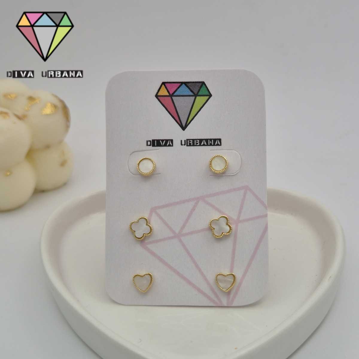 B7385 BRINCO PINO TRIO MADREPEROLA CIRCULO/TREVO/CORACAO