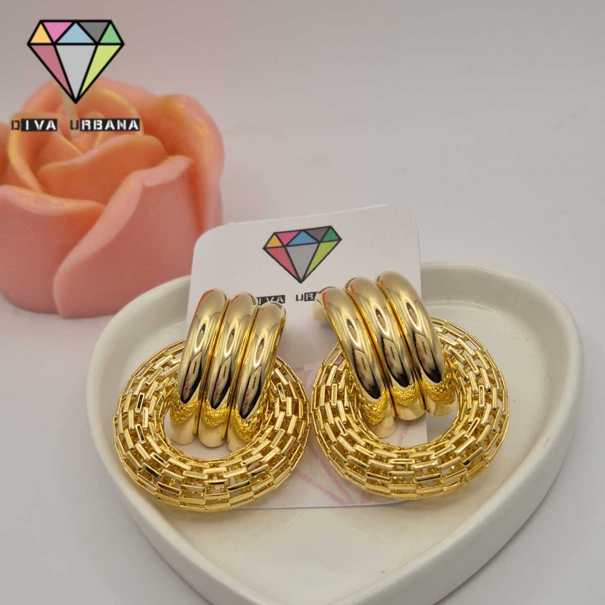 B7406 BRINCO PINO BASE TRES ELOS CIRCULO MALHA ITALIANA