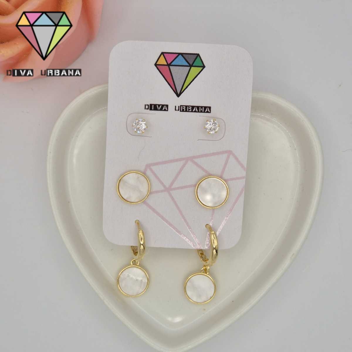 B7389 BRINCO TRIO CIRCULO MADREPEROLA PONTO DE LUZ