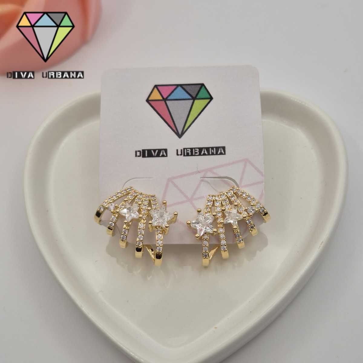B7447 BRINCO PINO EAR CUFF QUATRO ELOS ESTRELAS ZIRC CRISTAL