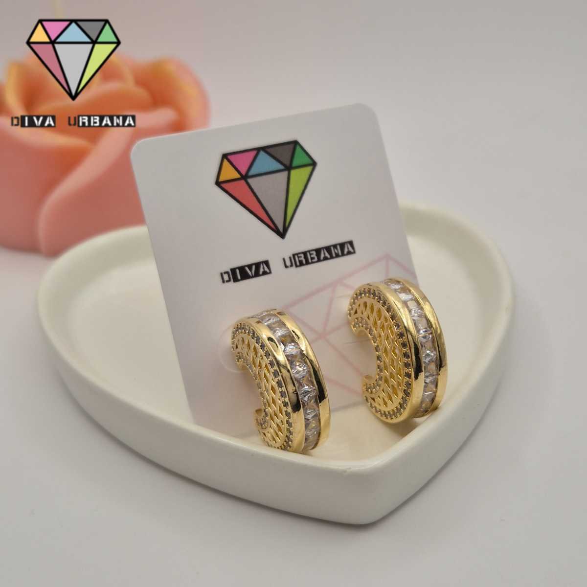 B7518 BRINCOS PINO ARGOLA ELOS CRAV ZIRC CRISTAL
