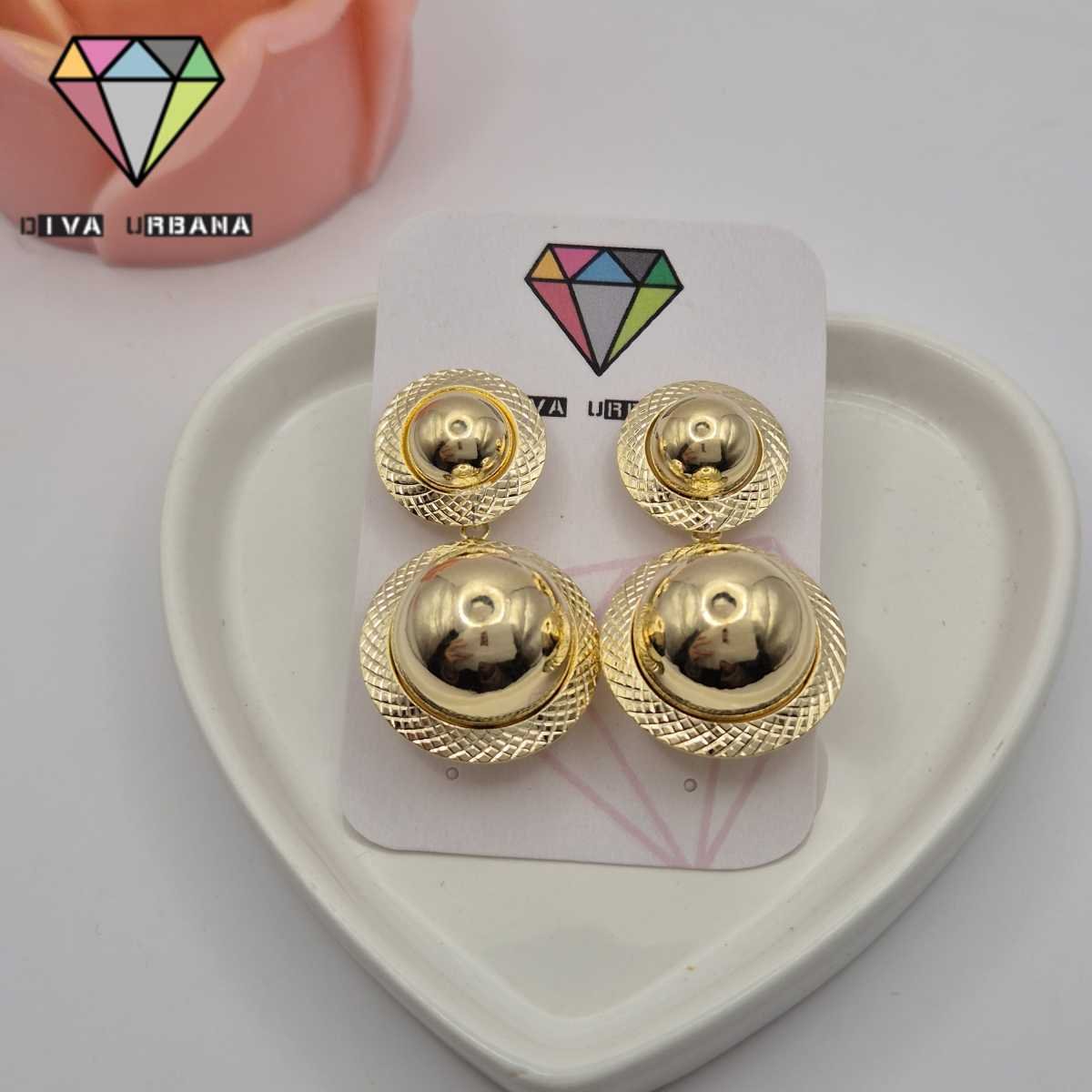 B7459 BRINCO PINO DOURADO ESFERA PENDULO ESFERA