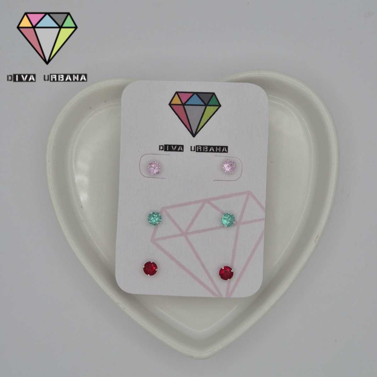 B7481 BRINCO PRATA 925 TRIO PONTO DE LUZ COLORS