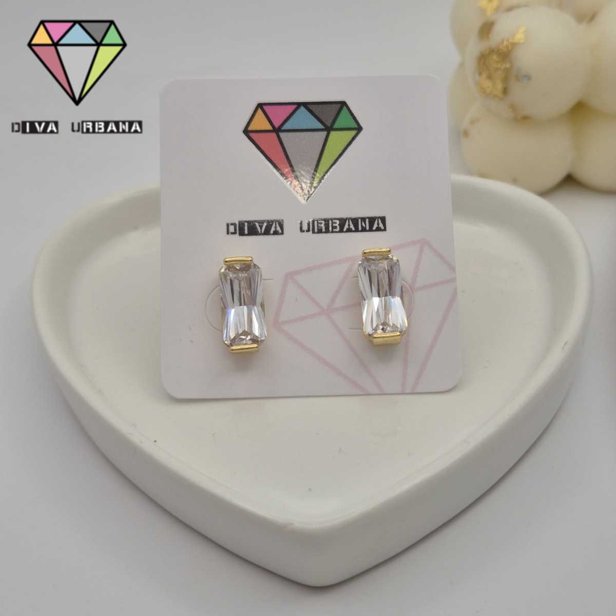 B7462 BRINCO PINO GOTA DOURADA UMA FILEIRA CENTRAL CRAV ZIRC CRIST