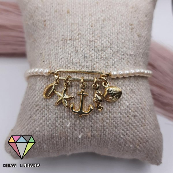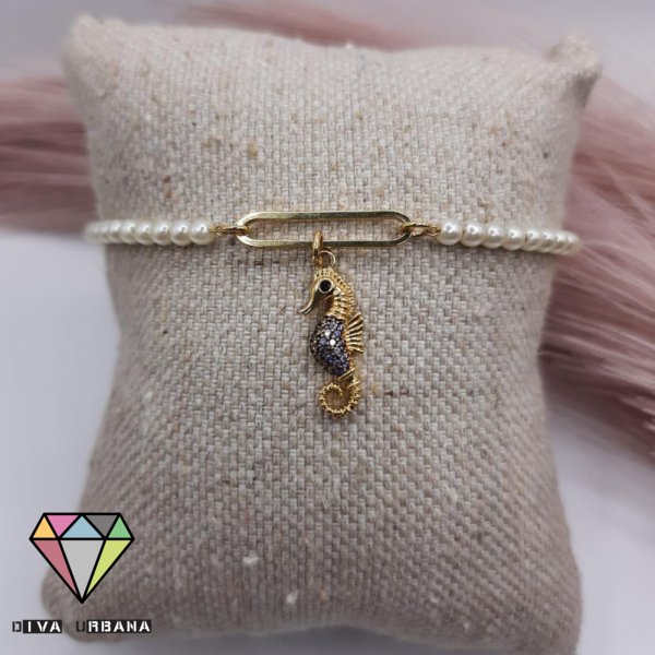 P0363 PULSEIRA PEROLAS CAVALO MARINHO CRAVEJADO