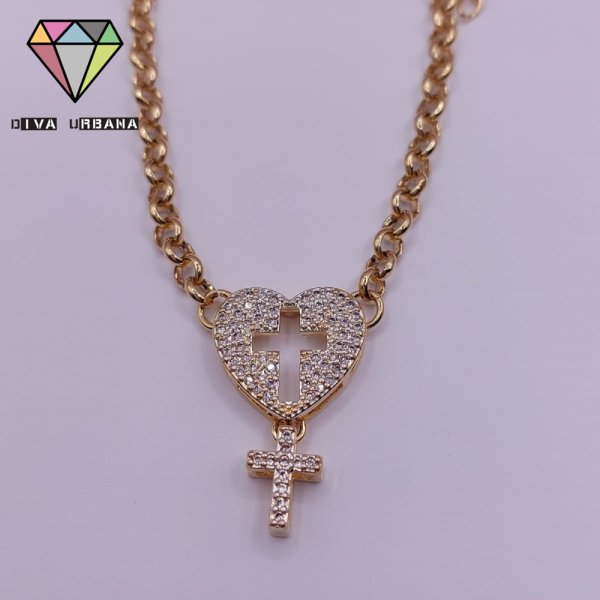 P0379 PULSEIRA CORAÇÃO CRUS VAZADA CRAV ZIRC CRISTAL