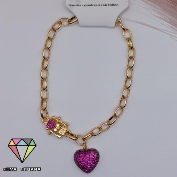 P0998 PULSEIRA ELO CORACAO M FECHO CORACAO EM ZIRC CRISTAIS