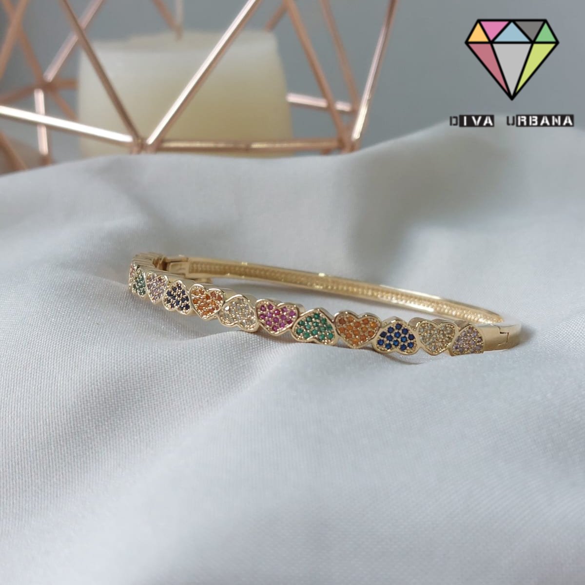 P0753 BRACELETE CORAÇÕES CRAV ZIRC COLORIDAS