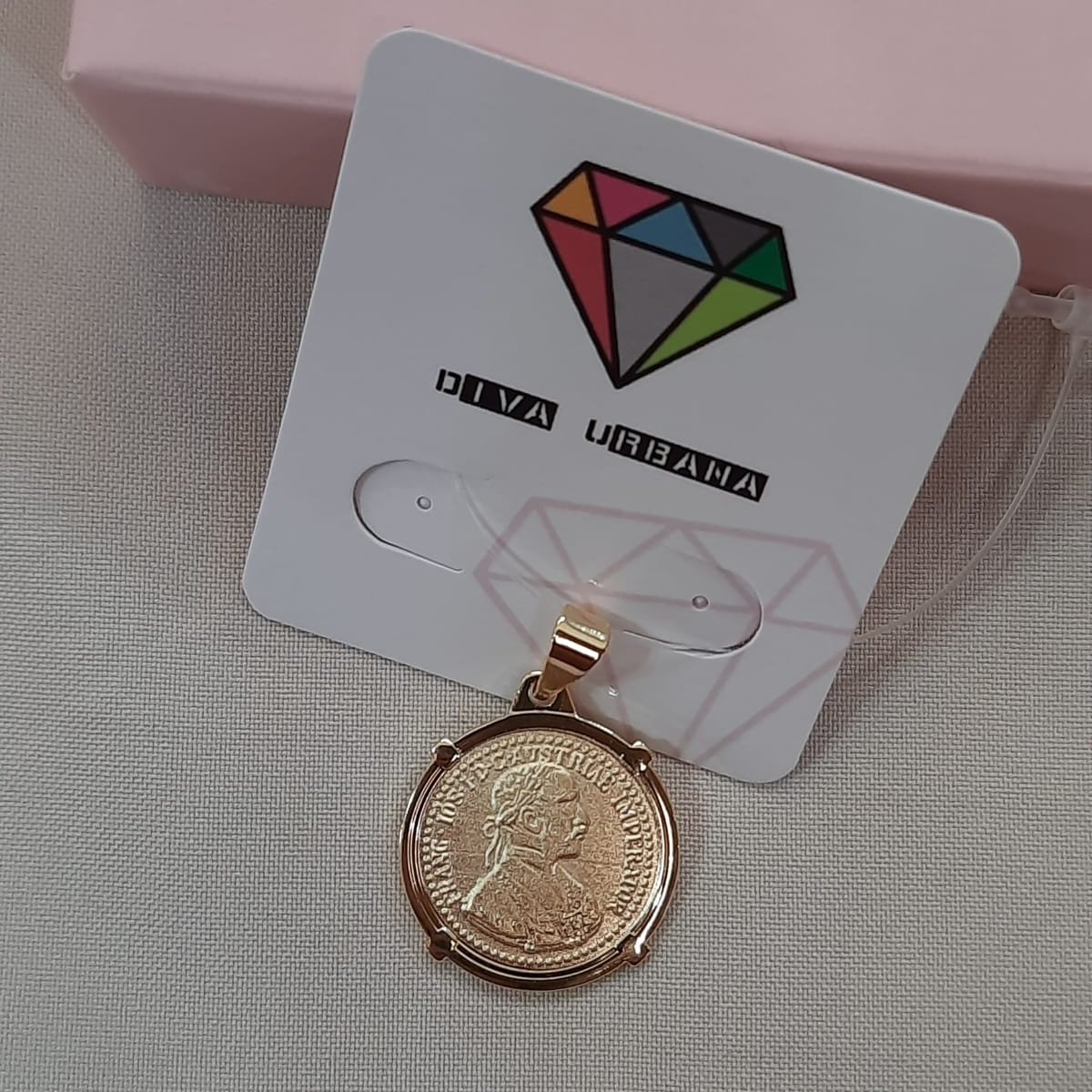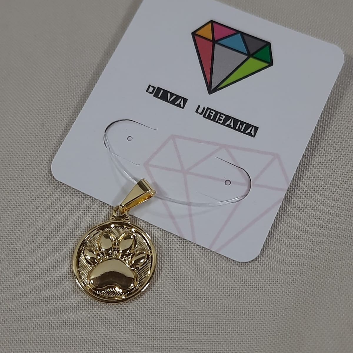 PI0297 PINGENTE REDONDO DOURADO PATINHA ESTAMPADA