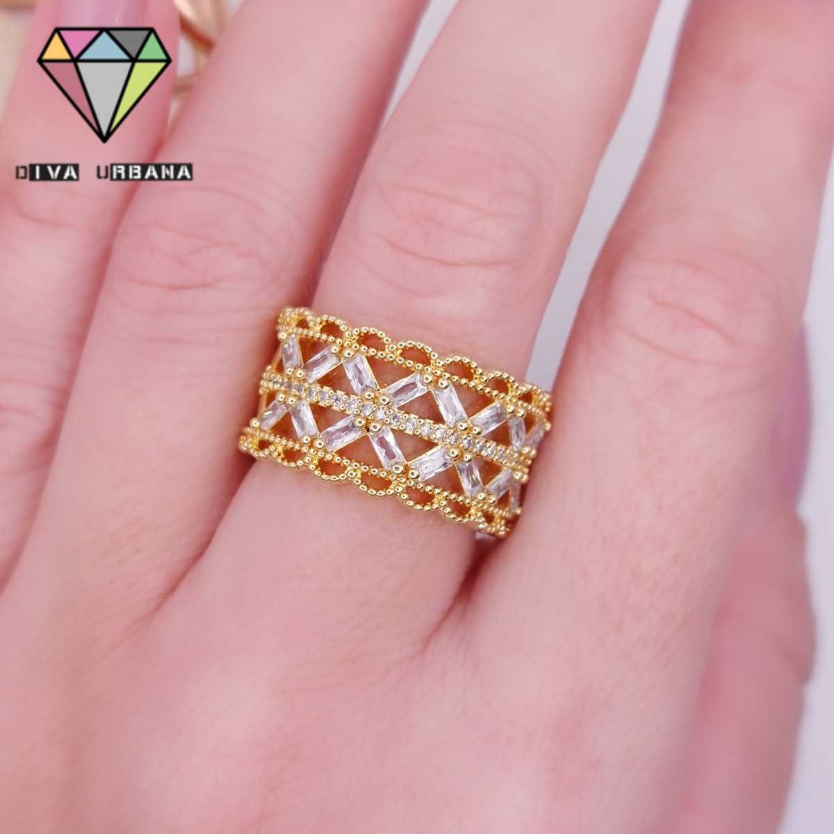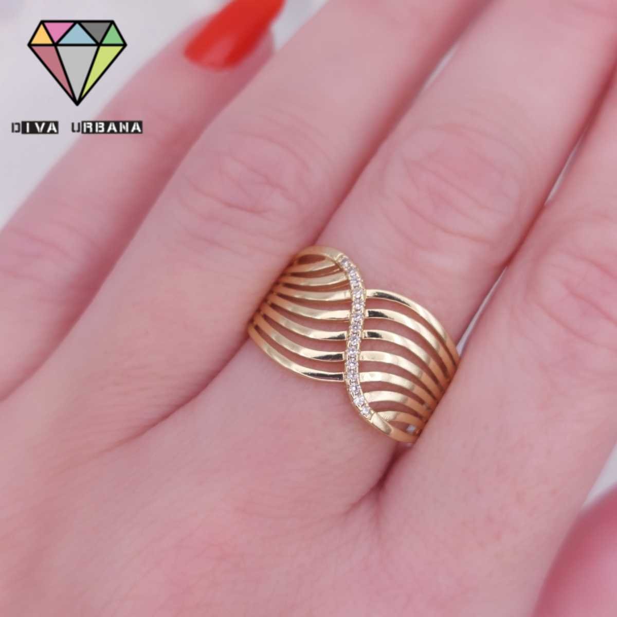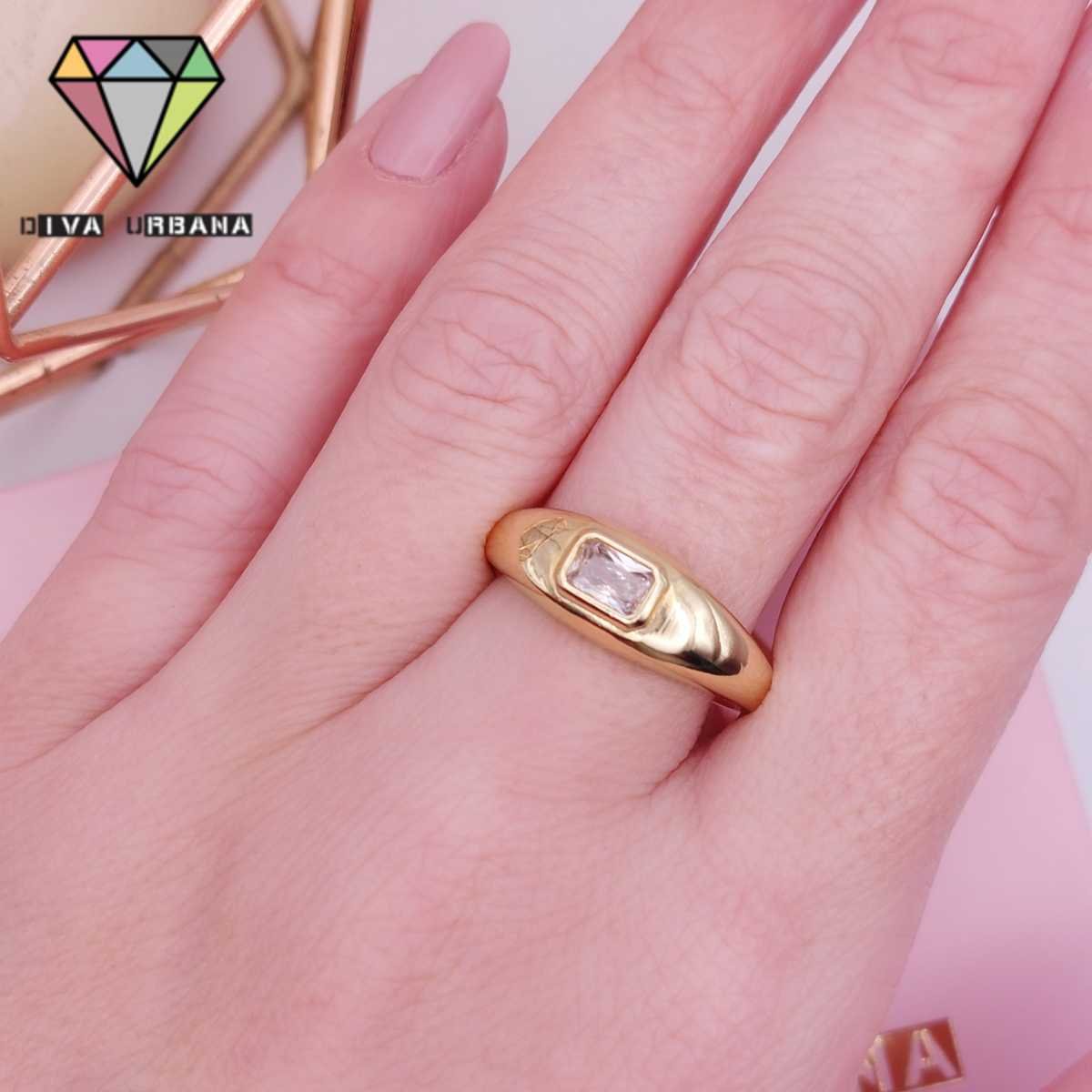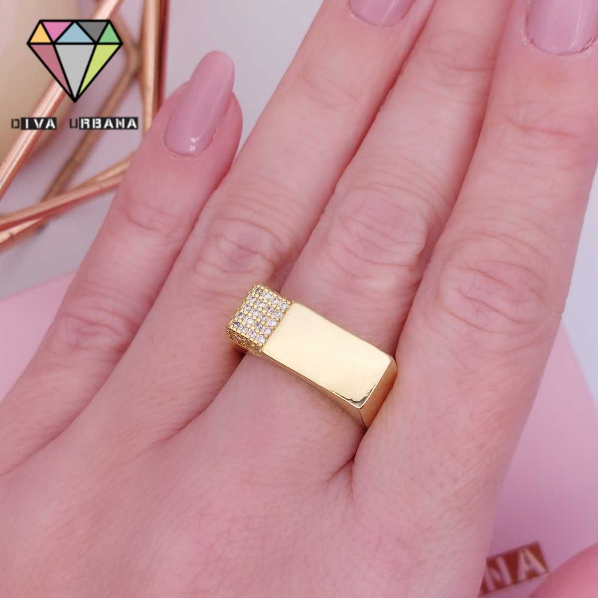 A1341 ANEL DOURADO QUADRADO LATERAL QUAD CRAV ZIRC CRISTAL