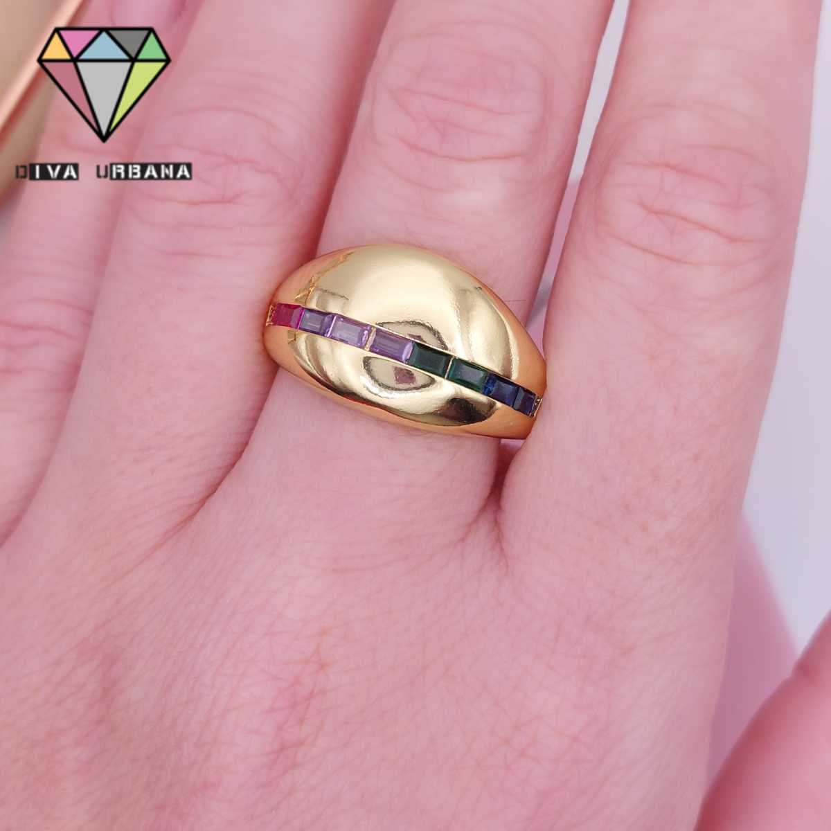 A1436 ANEL DOURADO MACIÇO FILEIRA CENTRAL NAVETE COLORIDO