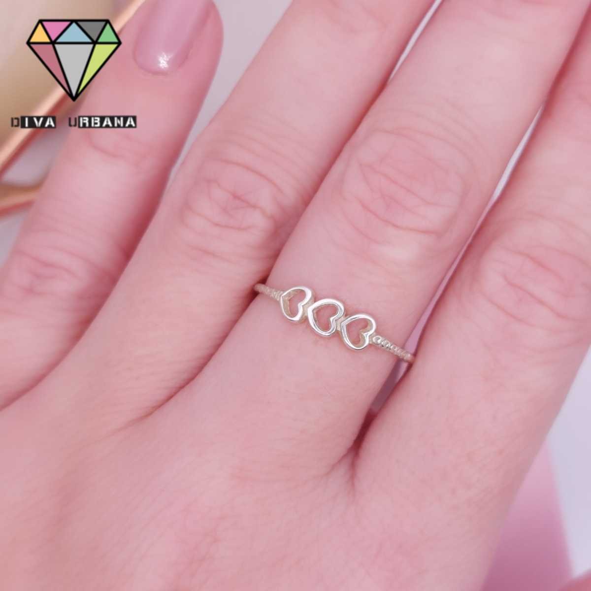 A1444 ANEL TRES CORAÇÕES VAZADOS PRATA 925