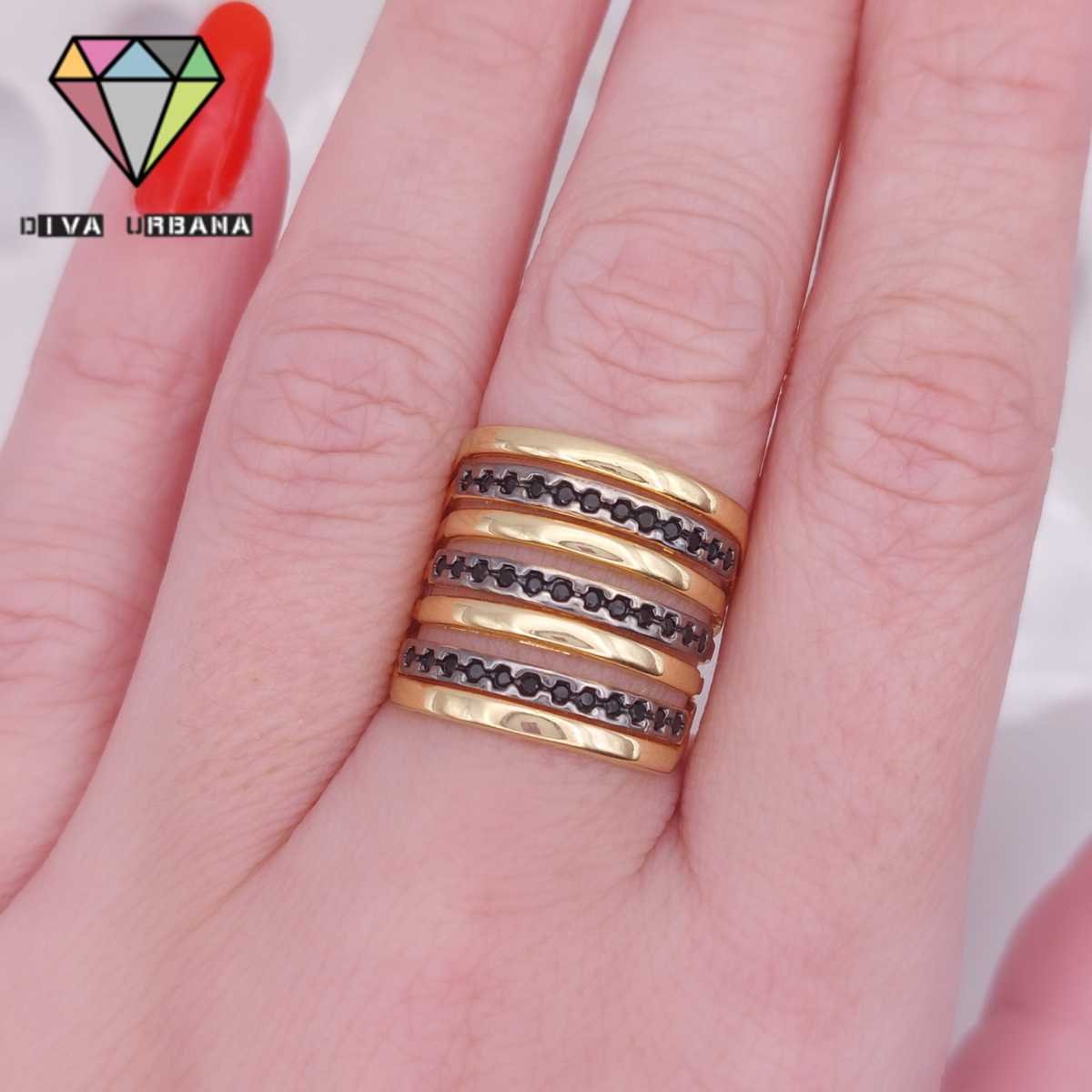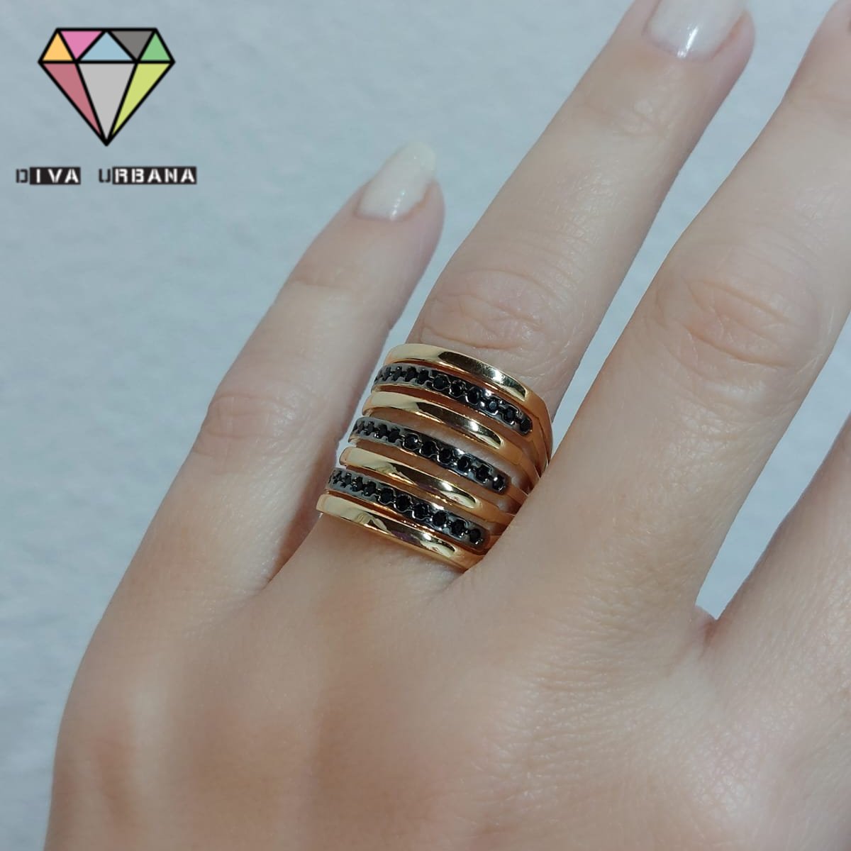 A1692 ANEL SETE ELOS TRES ZIRC NEGRA