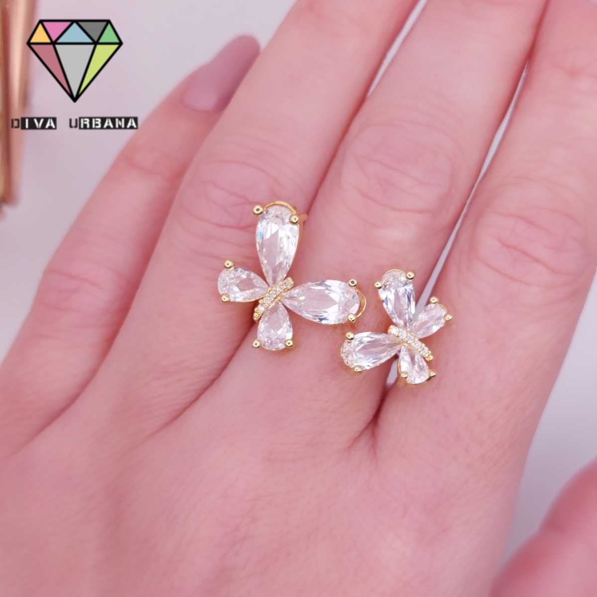 A1997 ANEL REGULAVEL DUAS BORBOLETAS ZIRC CRISTAL