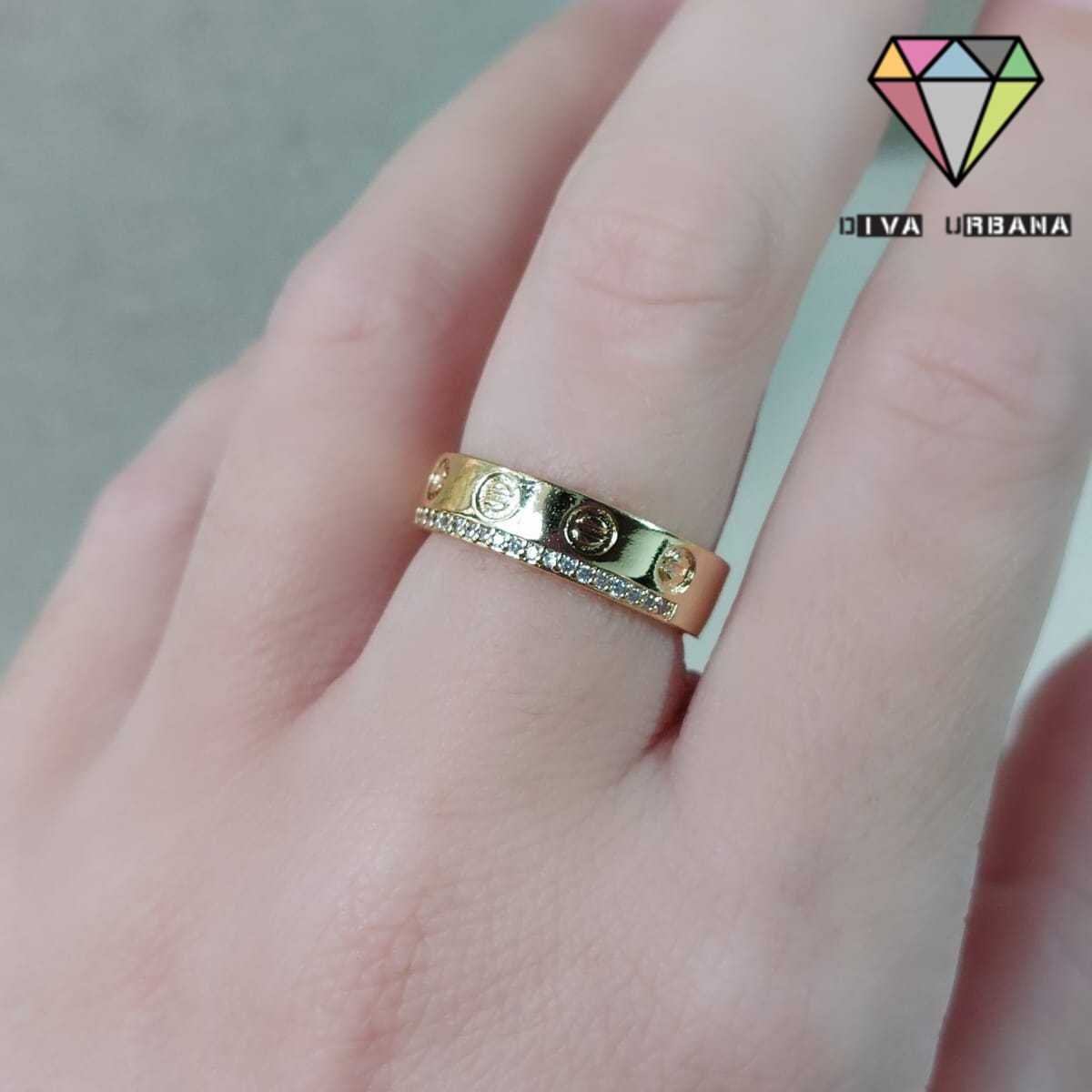 A2138 ANEL LARGO FILEIRA ZIRC CRISTAL PARAFUSO FENDA