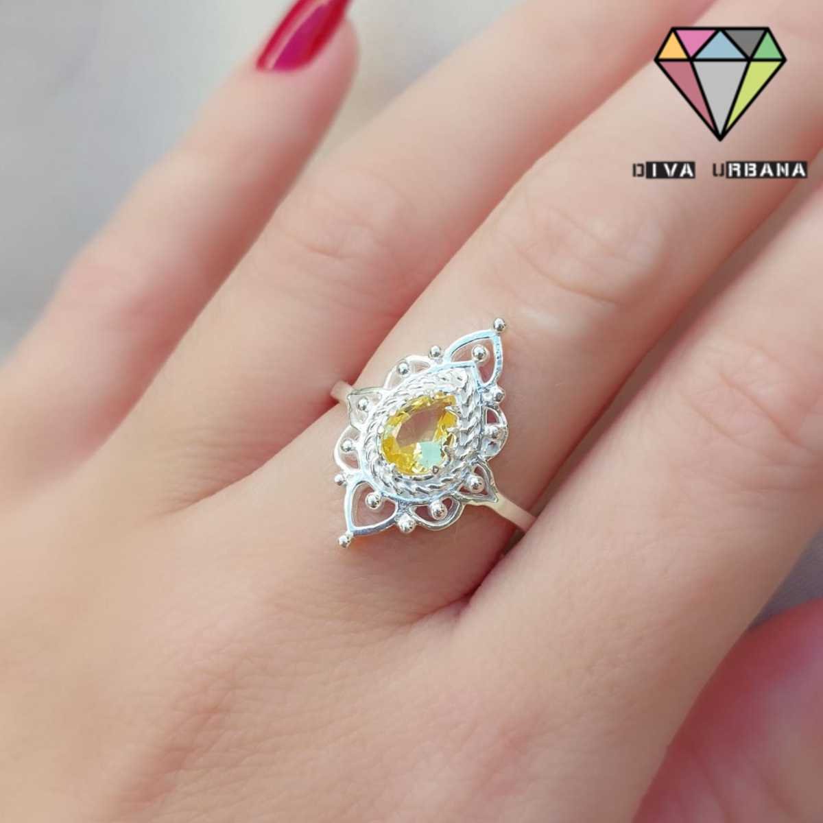 A2194 ANEL PRATA BRANCA BALI 925 PEDRA CITRINO