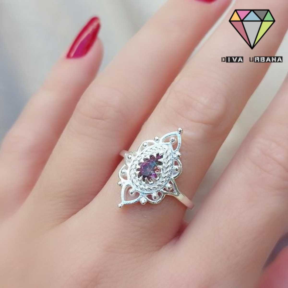 A2195 ANEL PRATA BRANCA BALI 925 PEDRA TOPAZIO MISTICO