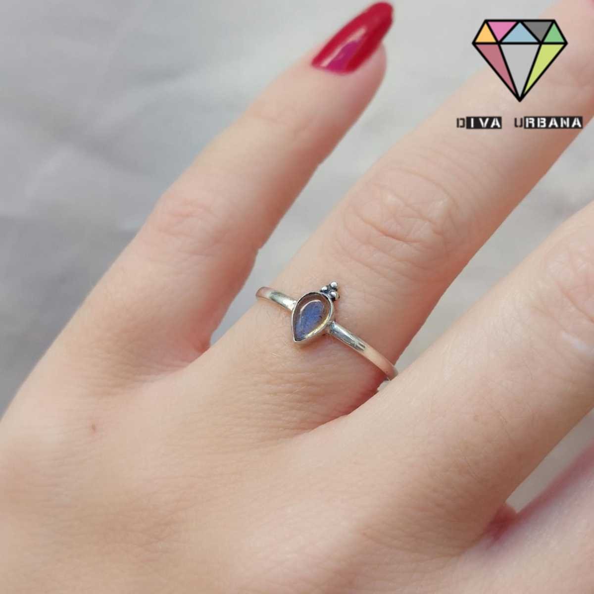A2206 ANEL PRATA 925 DE PEDRA NATURAL GOTA LABRADORITA